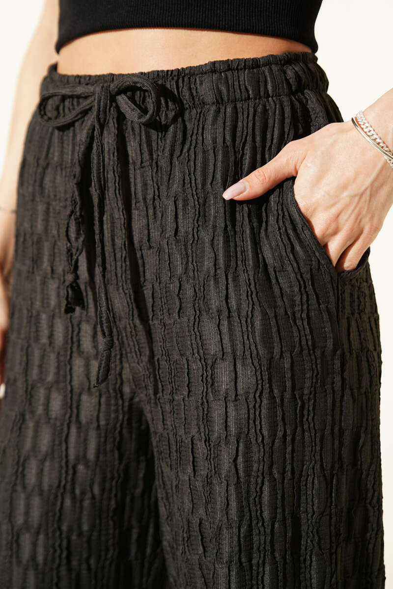 Beli Fermuarlı Garnili Pantolon Siyah