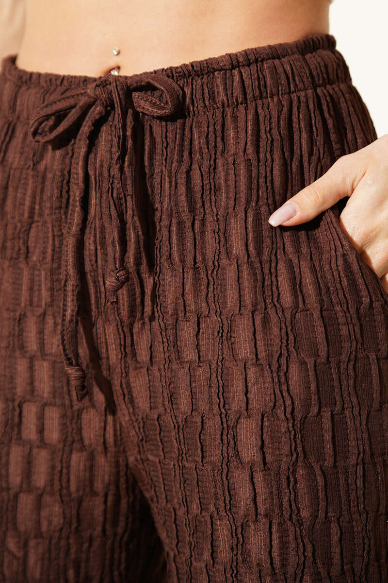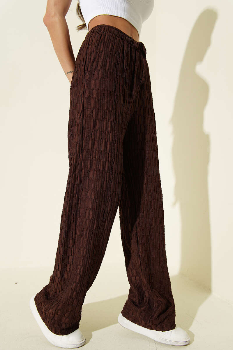 Duble Dar Paça Bel Lastikli Pantolon Camel