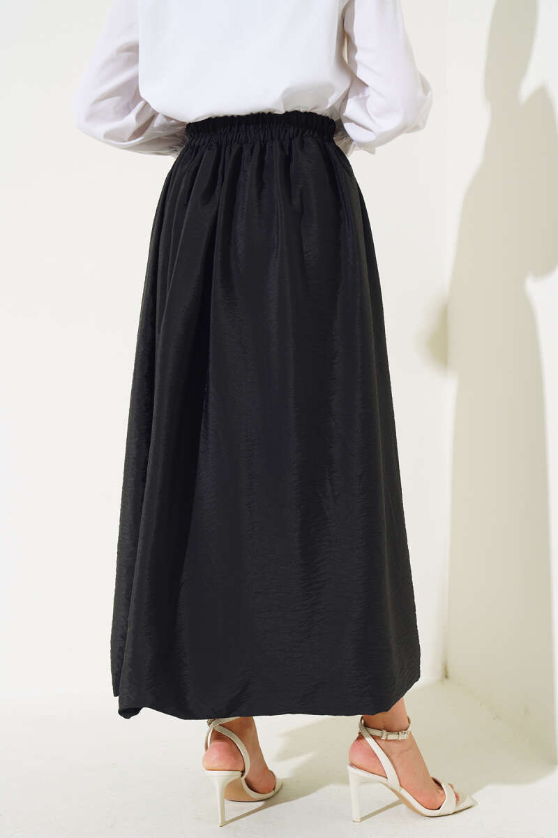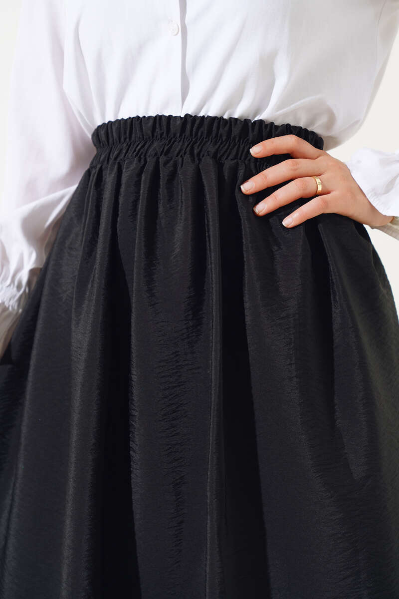 Ekose Desenli Düğmeli Kloş Etek Haki