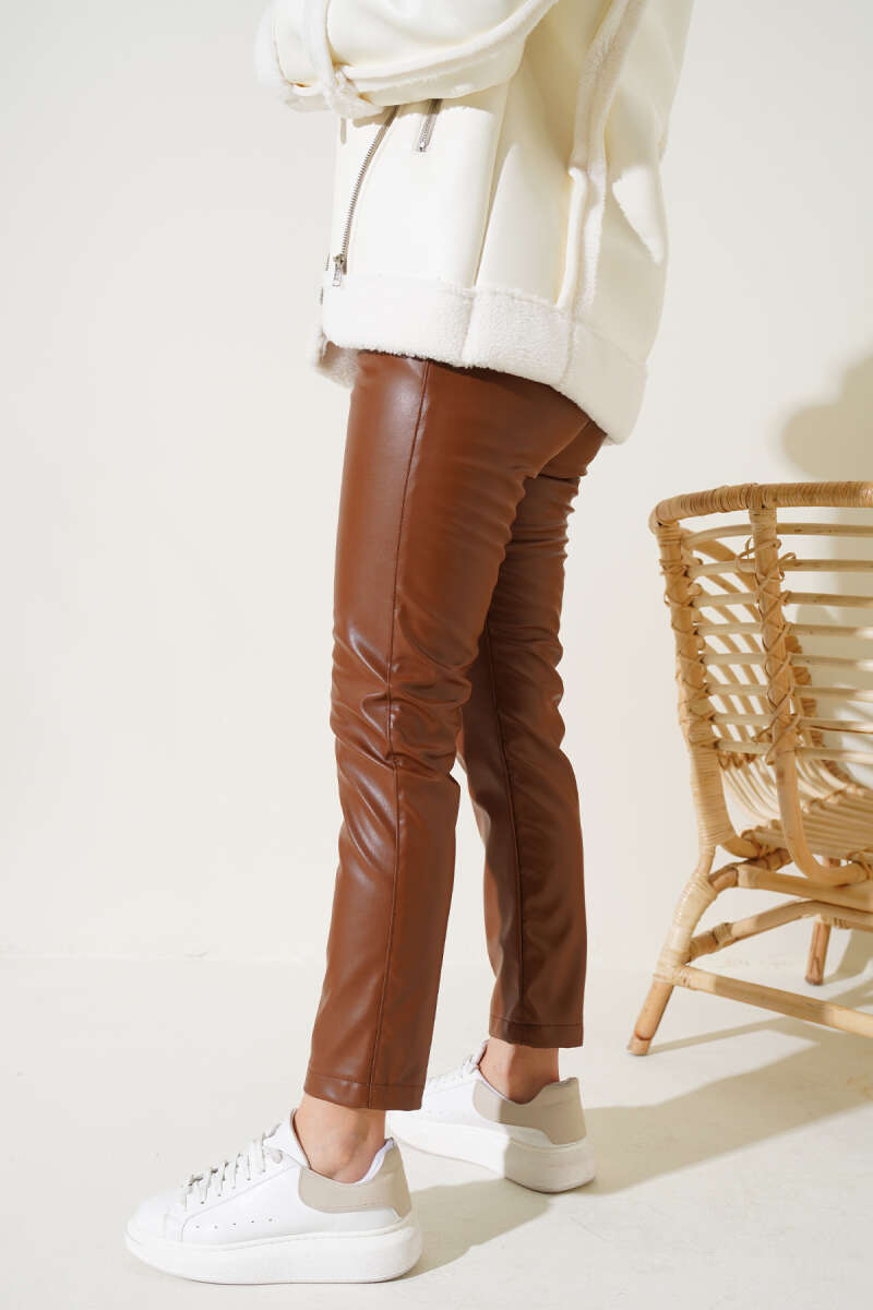 Yarım Bel Lastikli Basic Pantolon Acı Kahve