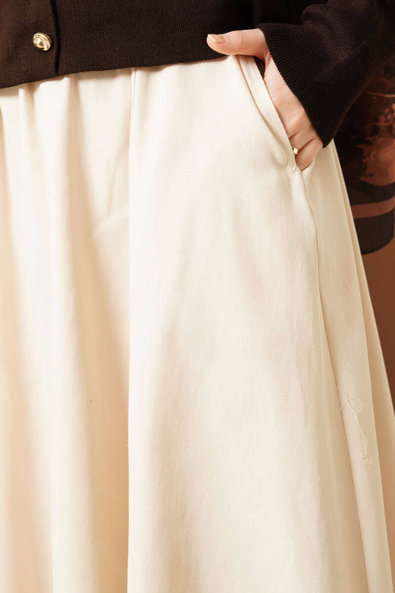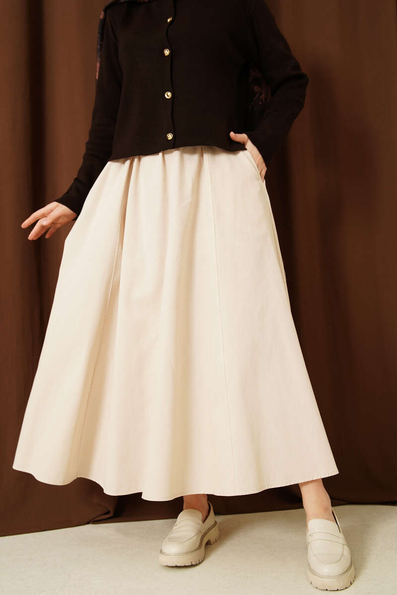 Beli Lastikli Cepli Gabardin Etek Bej