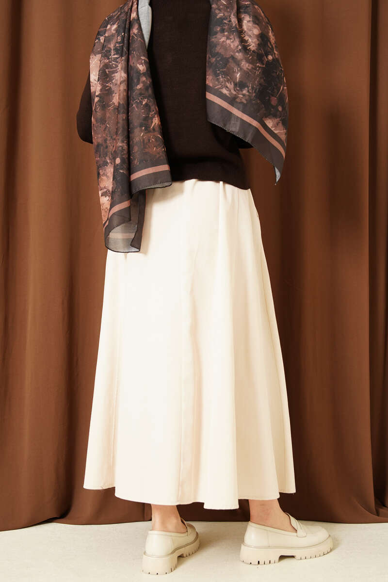 Ekose Desenli Şifon Kloş Etek Bej