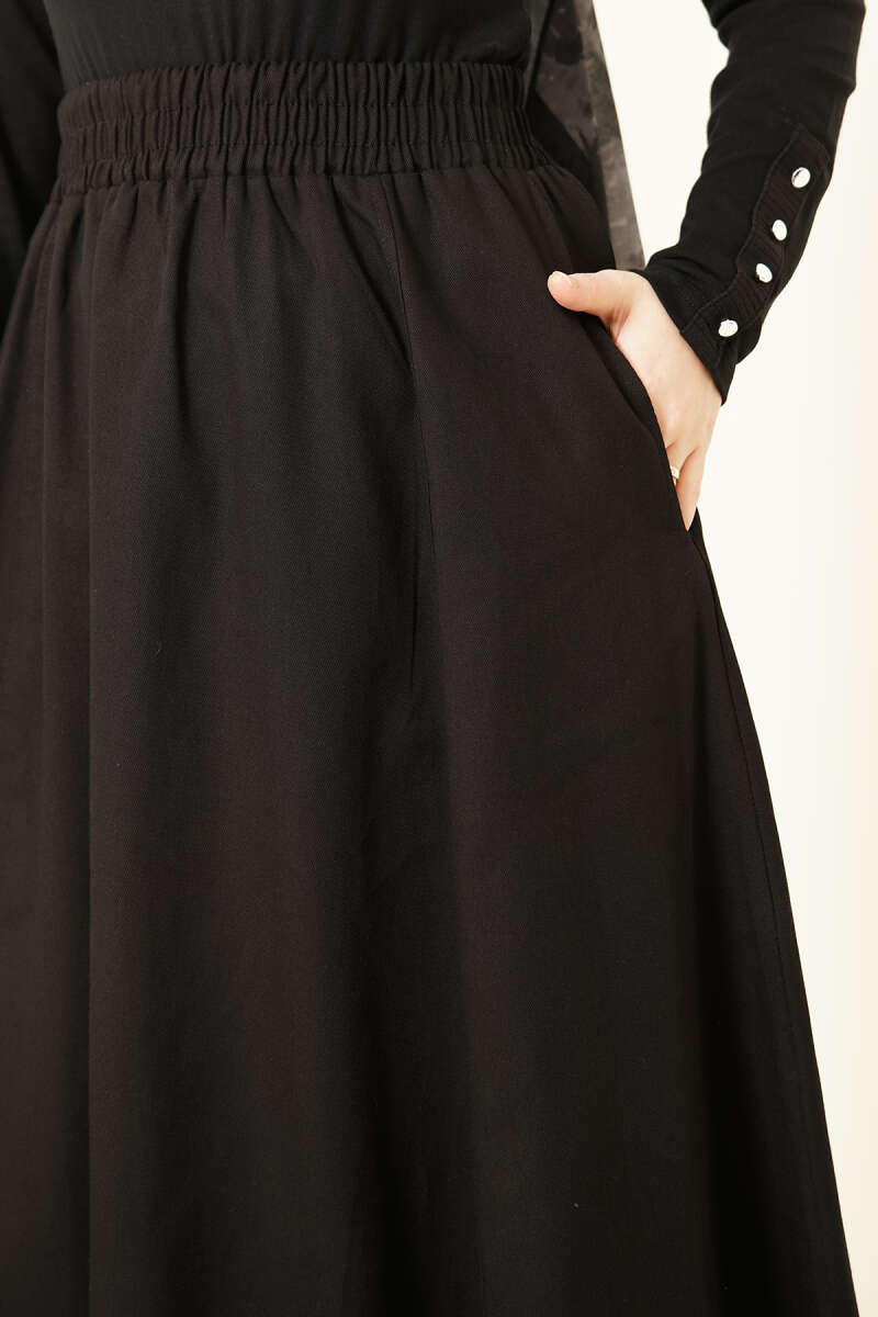 Beli Lastikli Cepli Gabardin Etek Siyah
