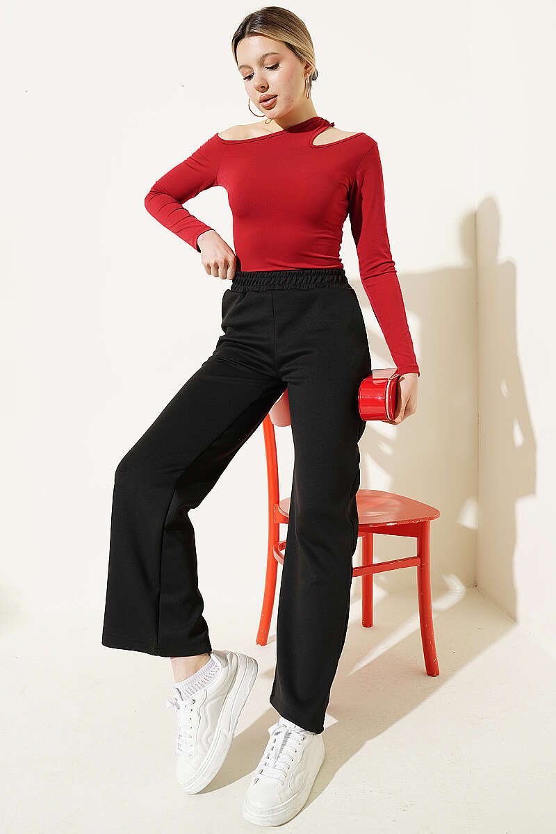 Asimetrik Omuz Detaylı Bluz Kırmızı