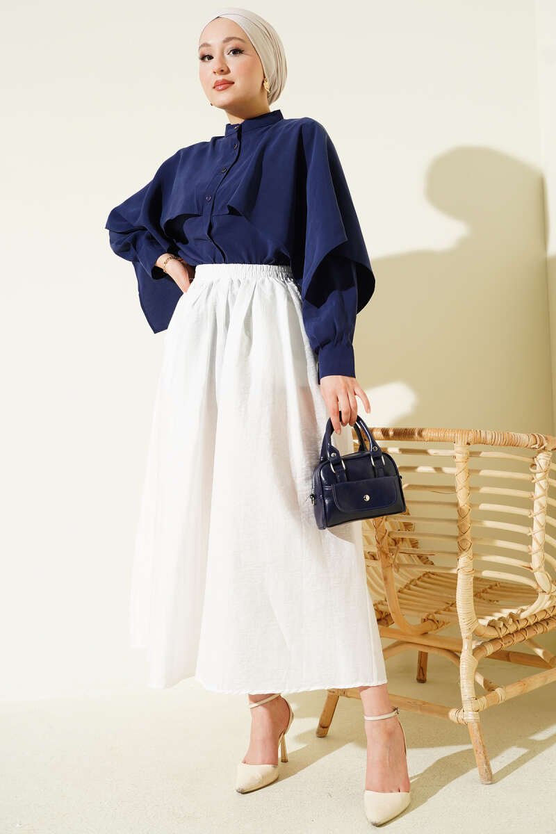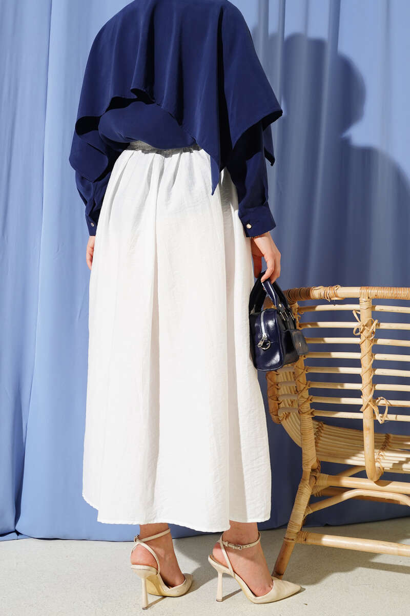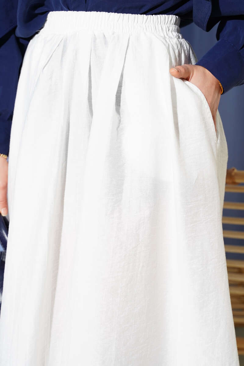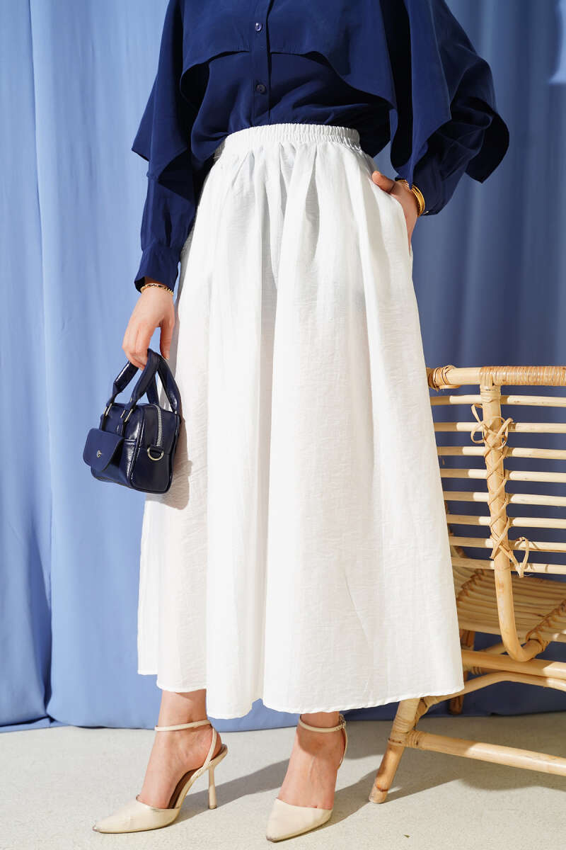 Beli Lastikli Cepli Kloş Etek Beyaz