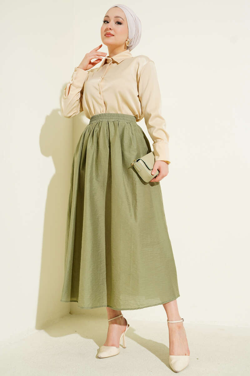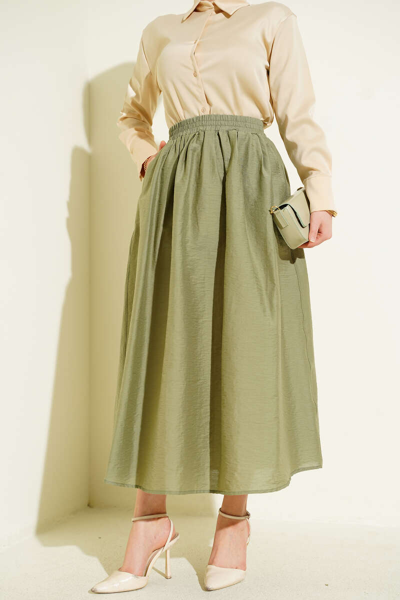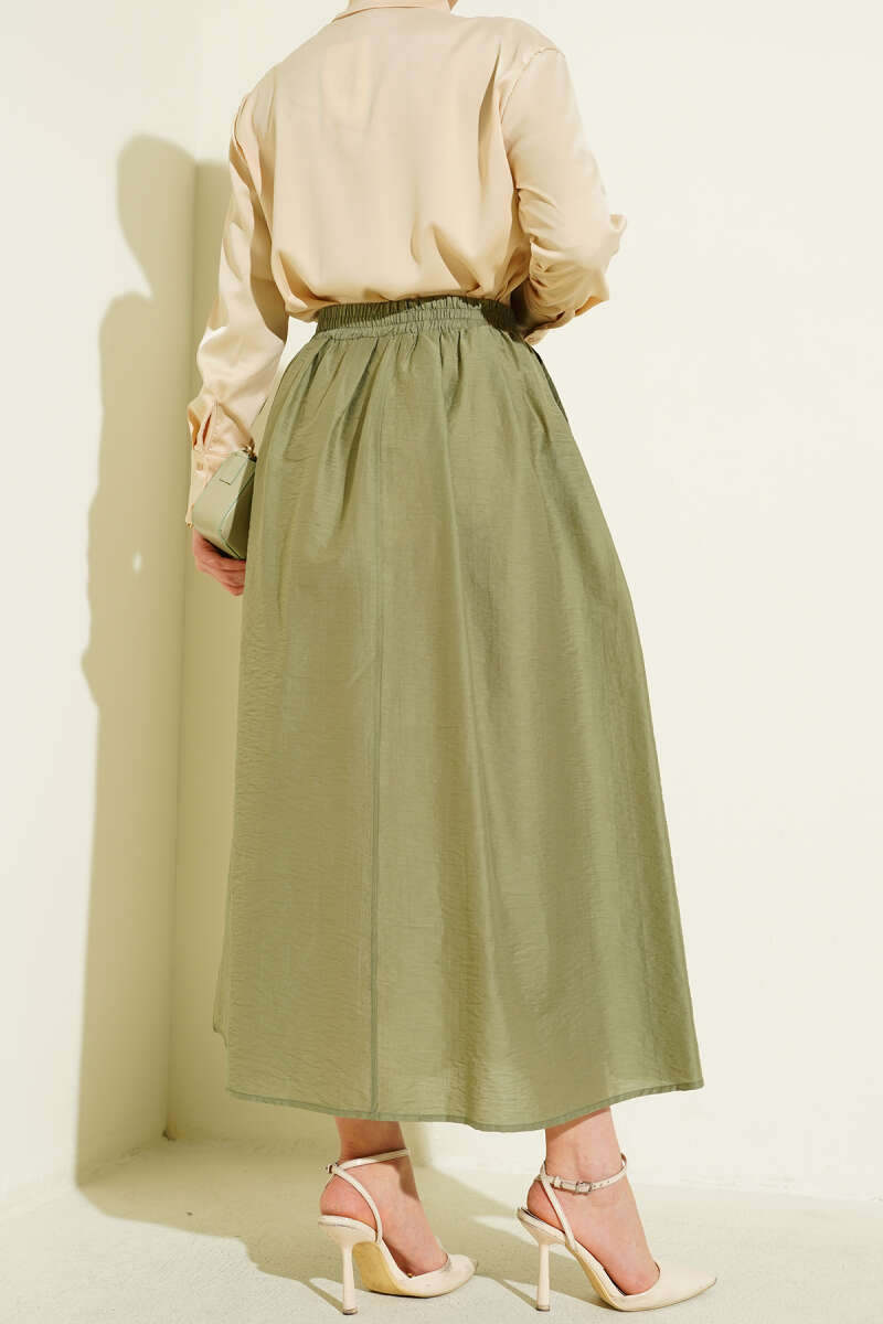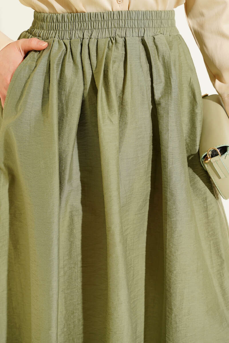 Beli Lastikli Cepli Kloş Etek Çağla Yeşili