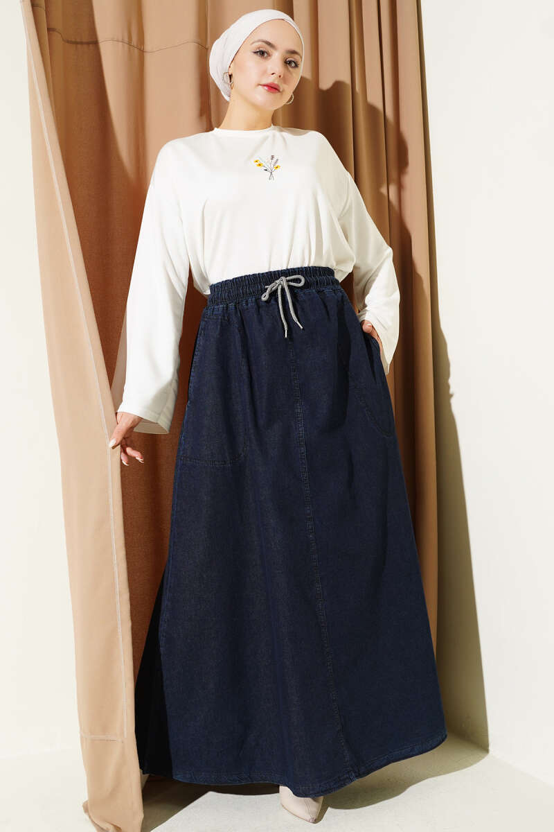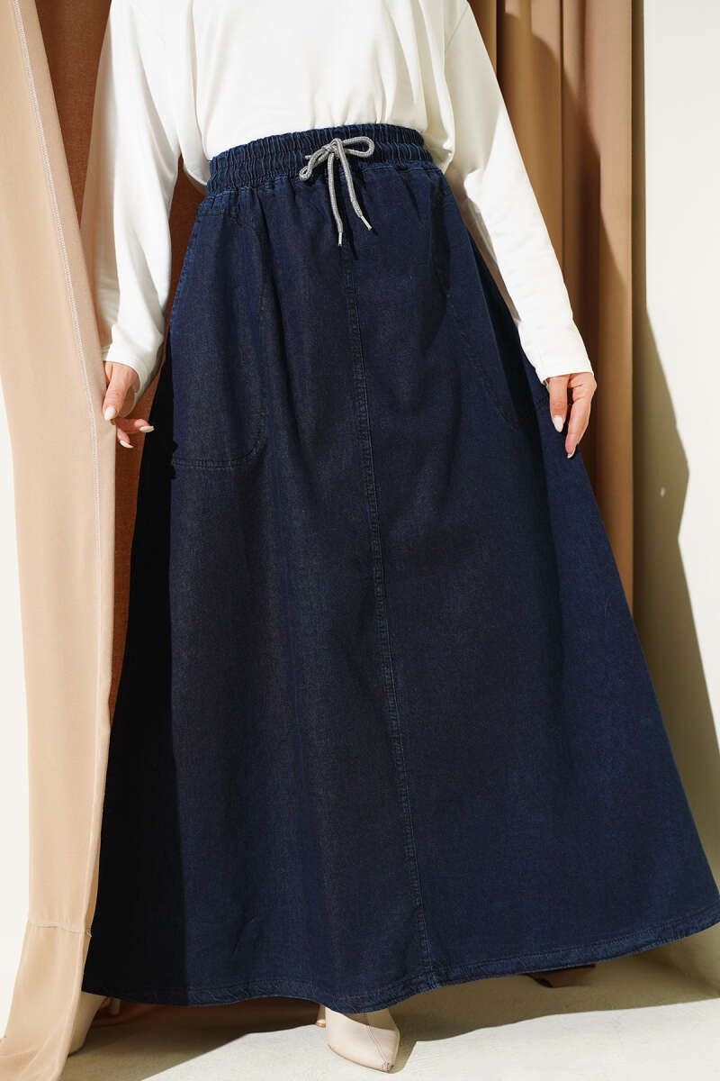 Çıma Şeritli Kemerli Etek Çağla Yeşili