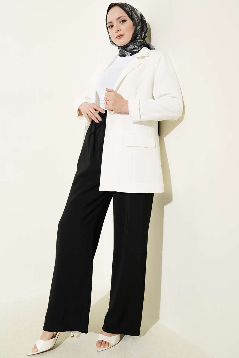 Konforu ve modern tasarımı bir araya getiren bu modal pantolon, bel kısmındaki esnek lastik ve ayarlanabilir bağcık detayıyla gün boyu mükemmel bir kullanım rahatlığı sunar. Yumuşak ve dökümlü kumaş dokusu, geniş paça kesimiyle birleşerek her adımda zarif ve akışkan bir silüet oluşturur. Yan kısımlarda bulunan fonksiyonel cep detayları tasarıma dinamik bir hava katarken, yüksek bel formu vücut hatlarını naifçe dengeler. Hem günlük şıklıkta hem de ofis stilinde çok yönlü bir parça olan bu pantolon, çabasız zarafeti gardırobunuza taşır.