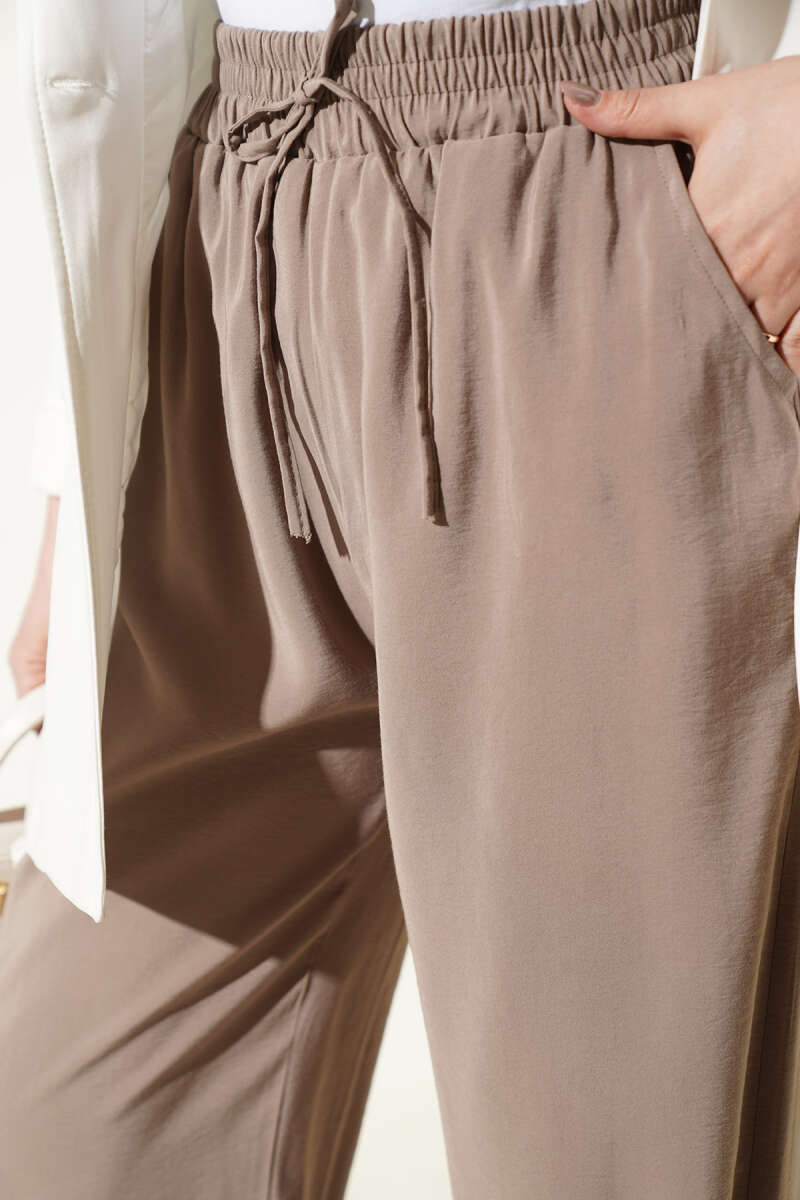 Beli Lastikli Cepli Modal Pantolon Vizon