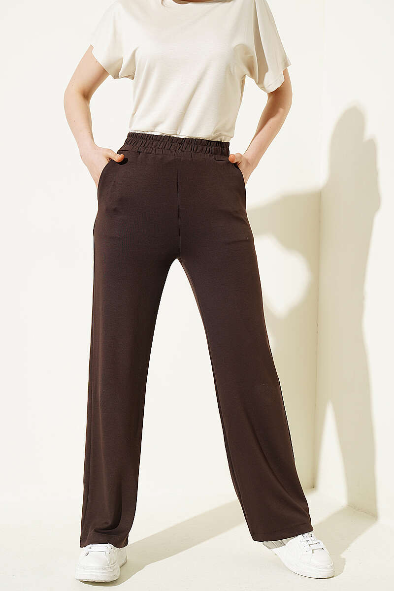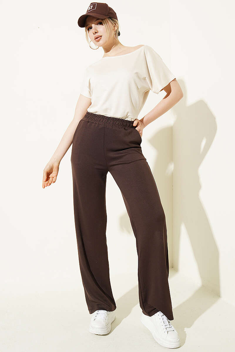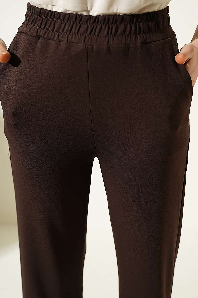 Kuşaklı Kısa Kol Kot İkili Takım Kahve