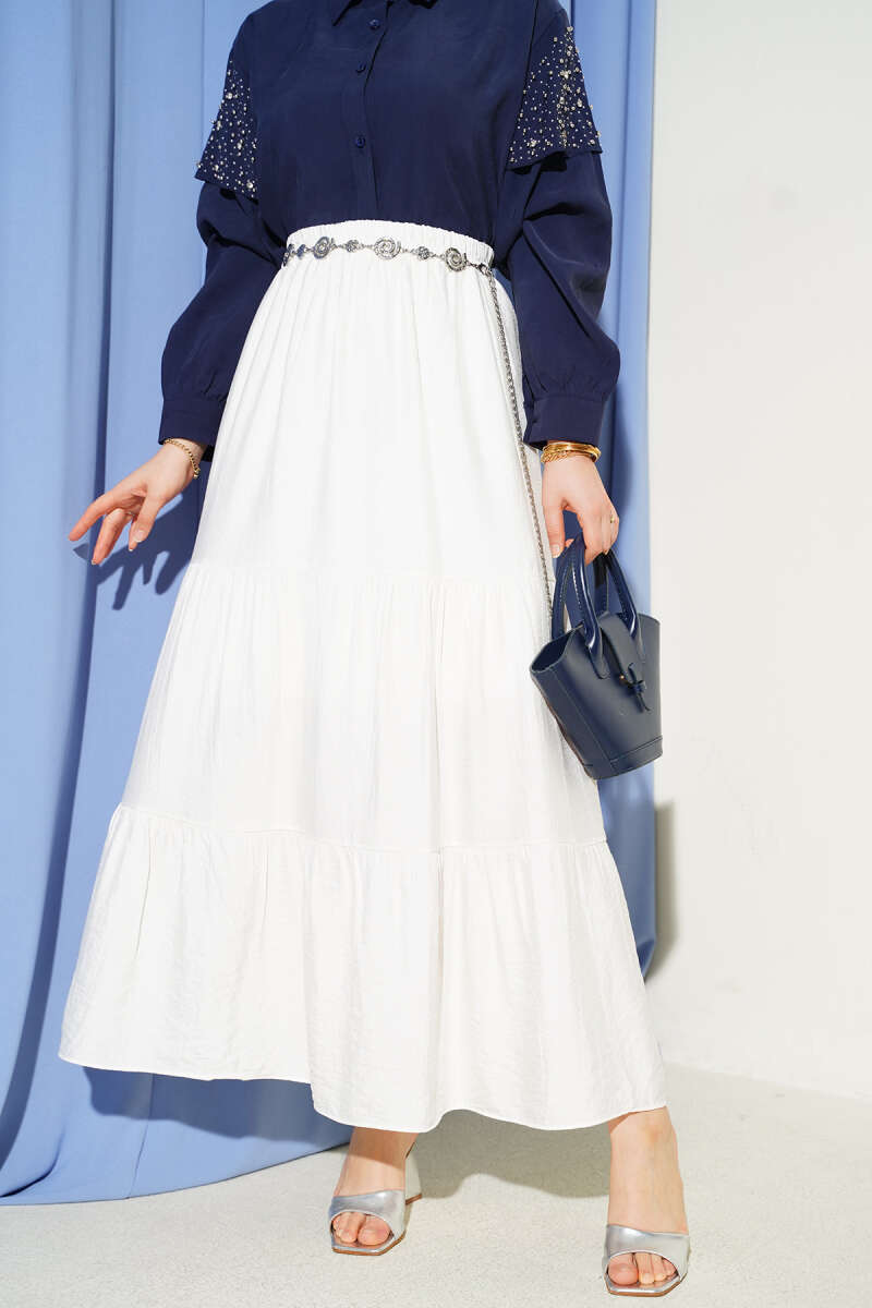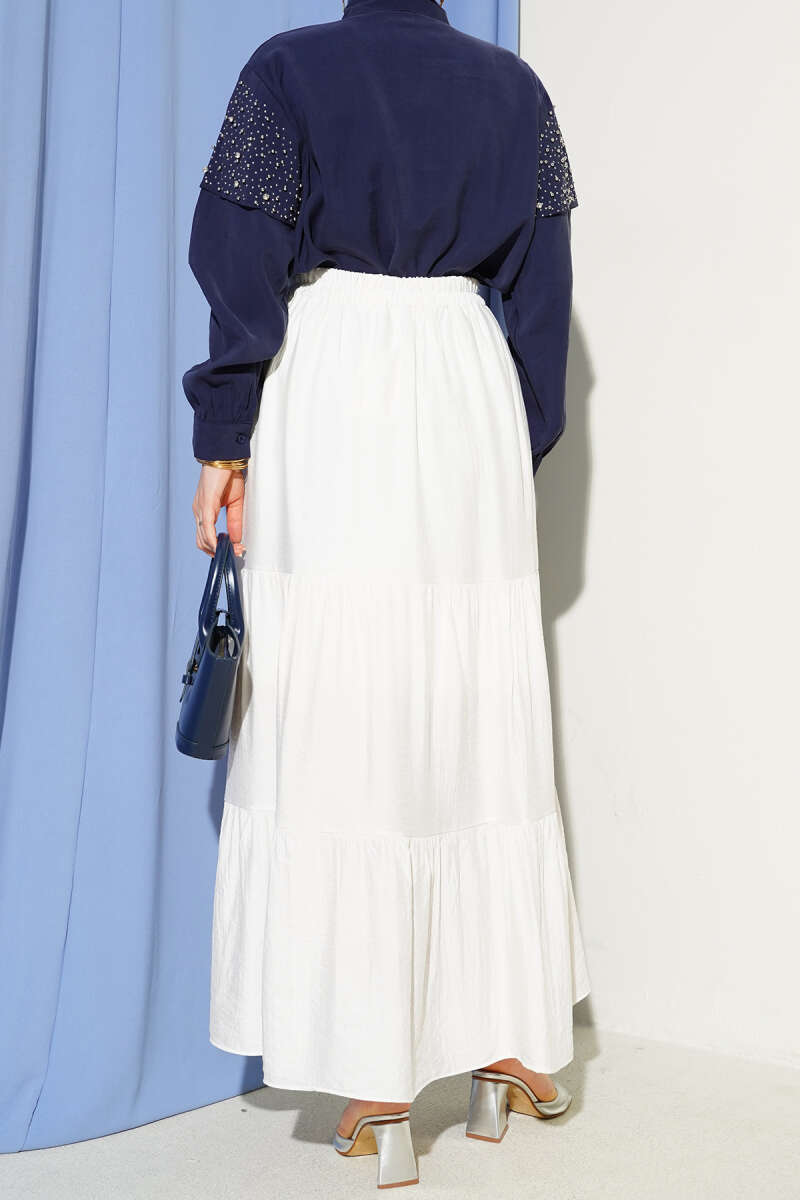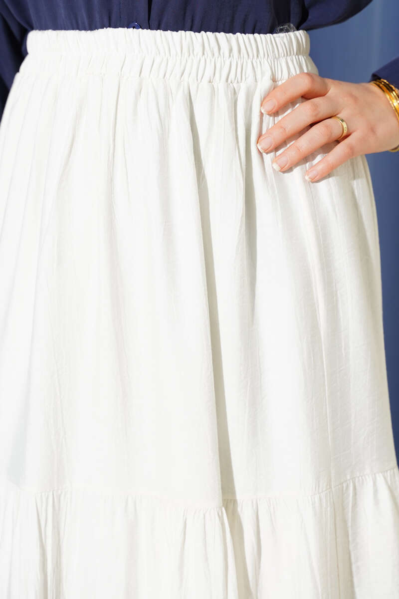 Beli Lastikli Çift Katlı Etek Ekru