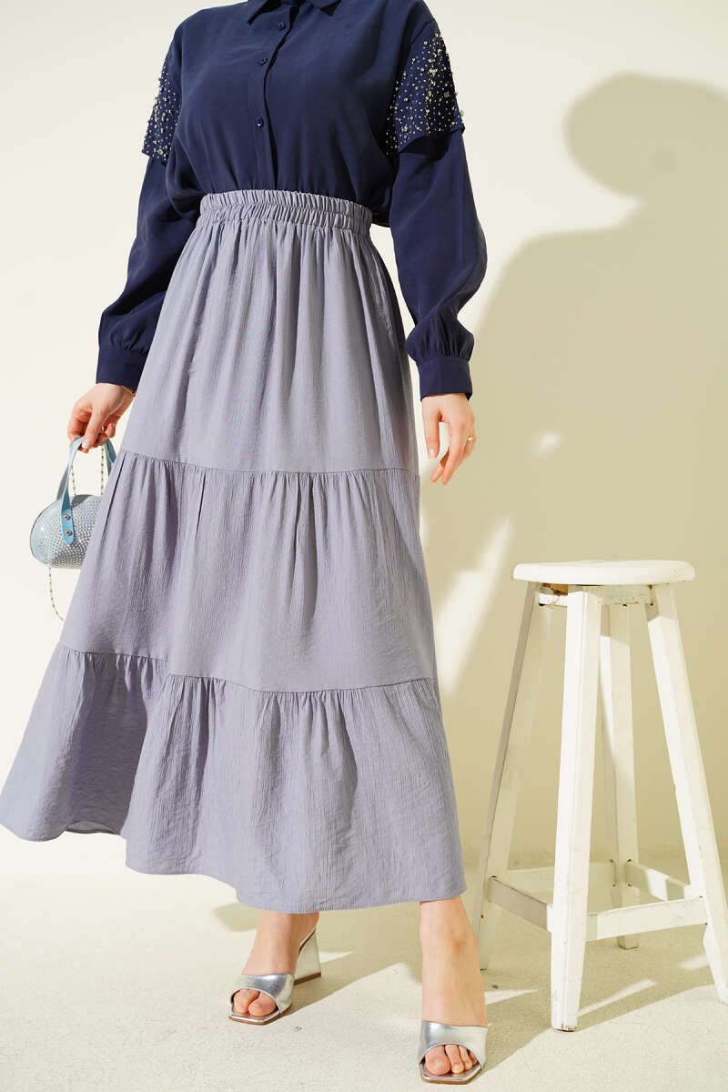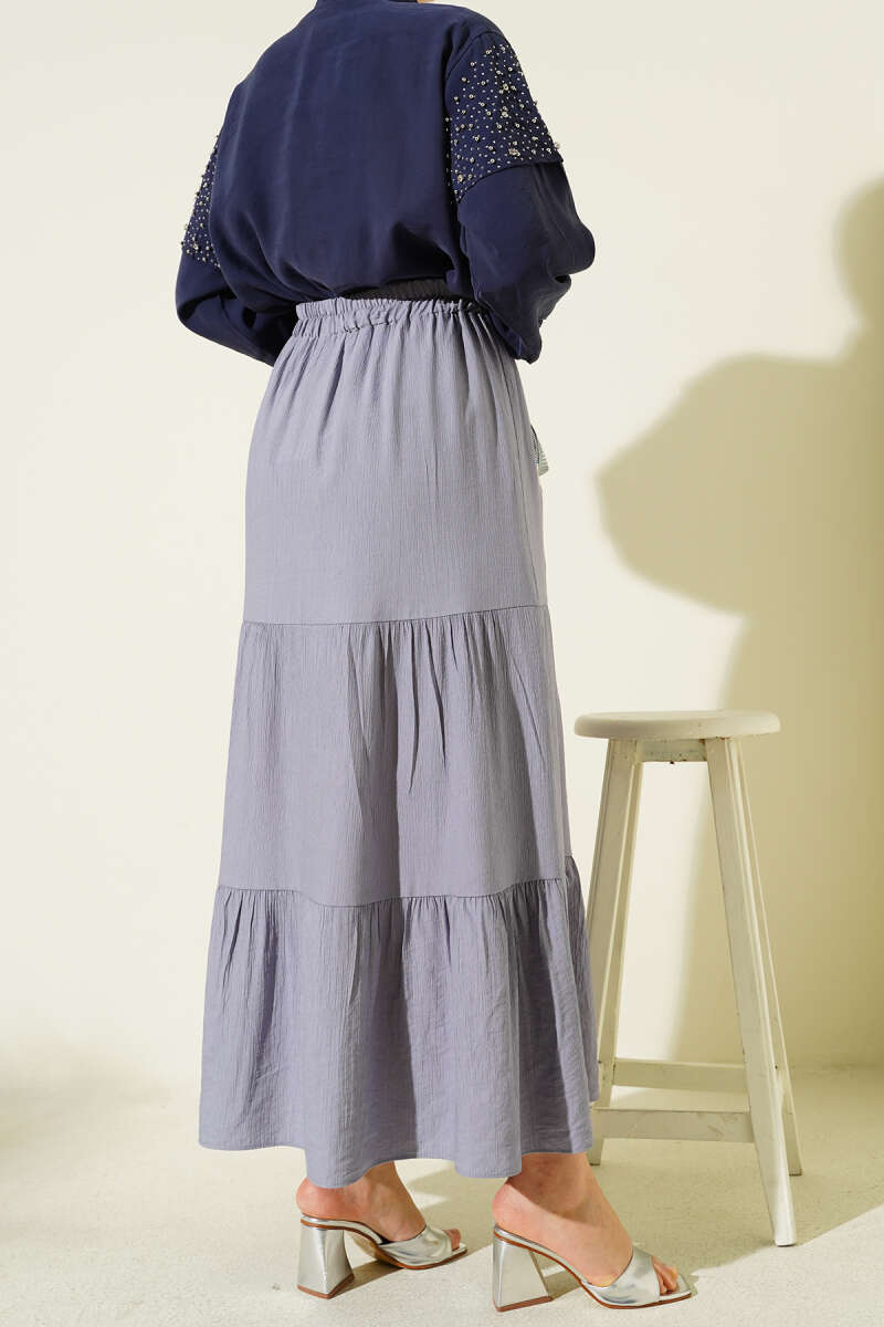 Kemerli Bel Lastikli Kloş Etek Antrasit