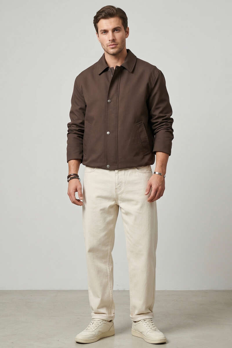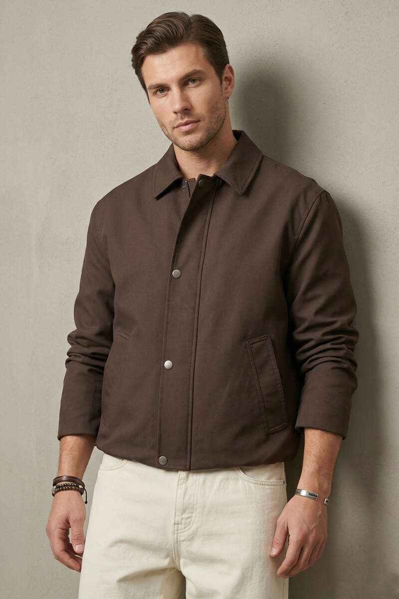 Beli Lastikli Çıtçıt Fermuarlı Erkek Ceket Kahve