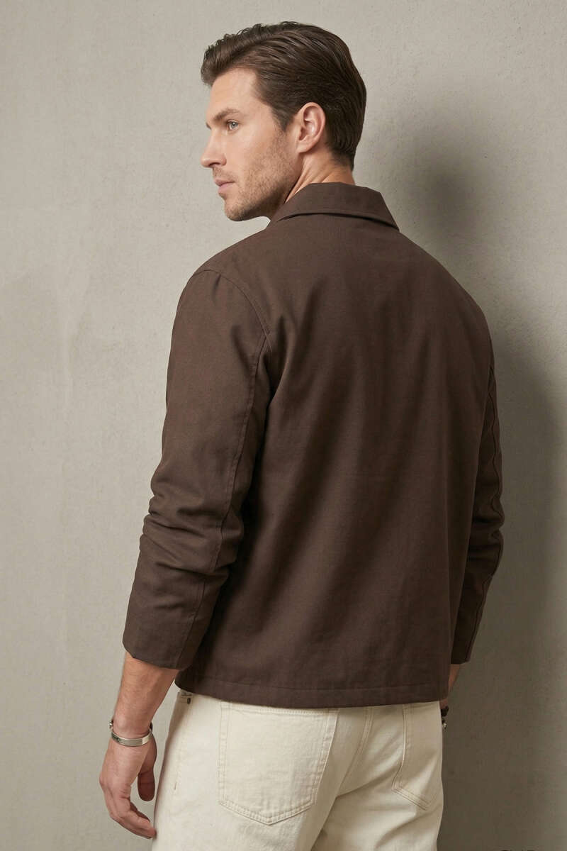 Dik Yaka Tensel Erkek Ceket Kahve