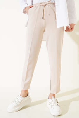 Beli Yarım Lastikli Kumaş Pantolon Kahve