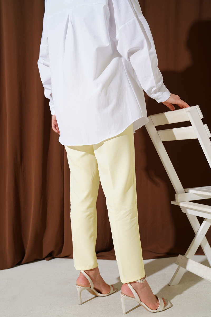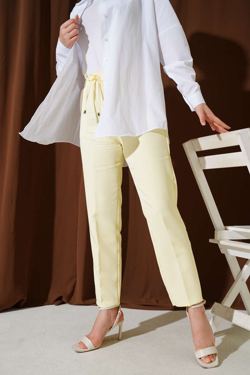 Beli Lastikli Dar Paça Pantolon Sarı