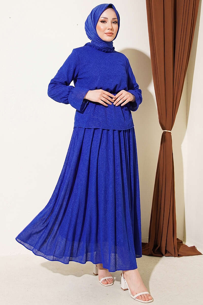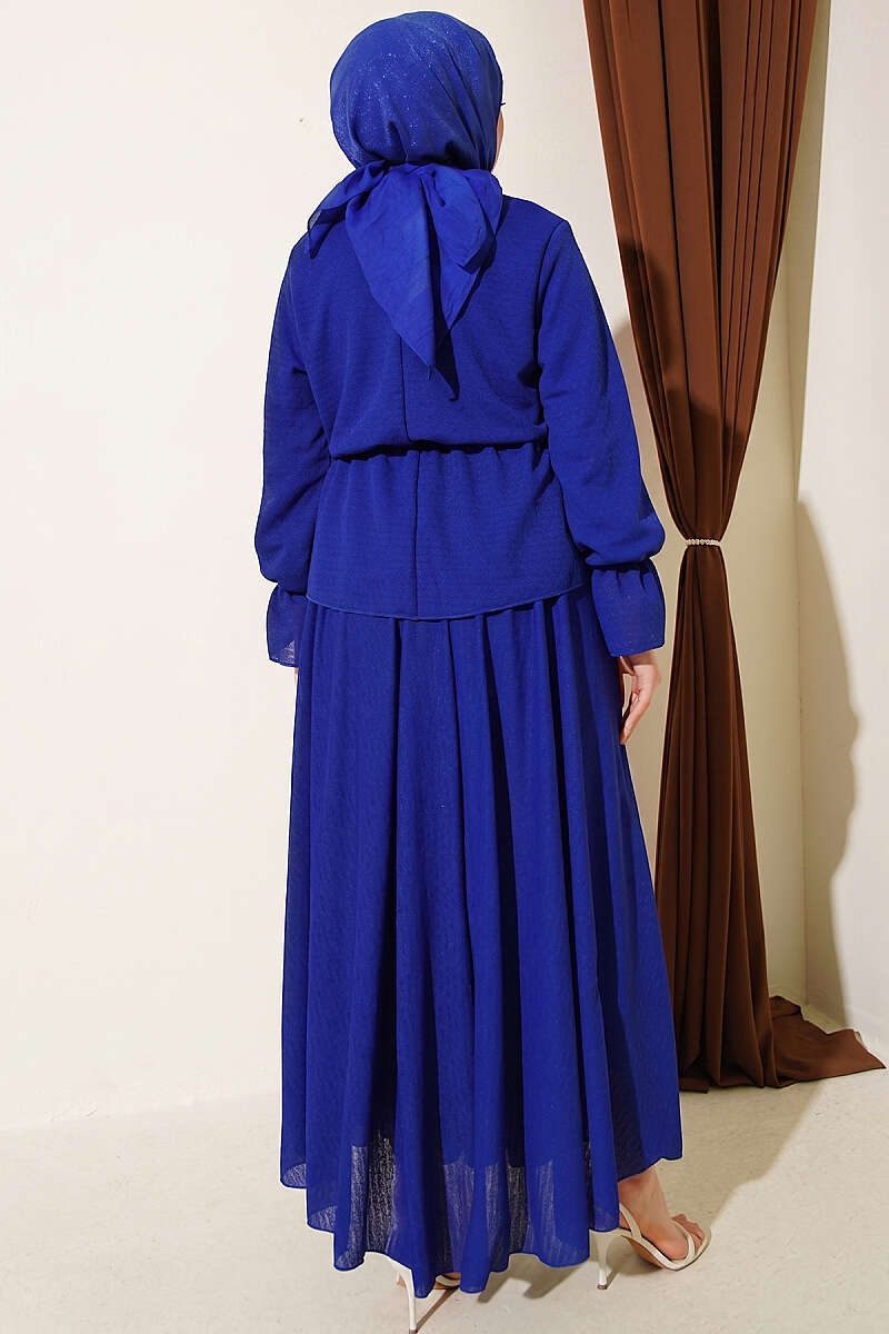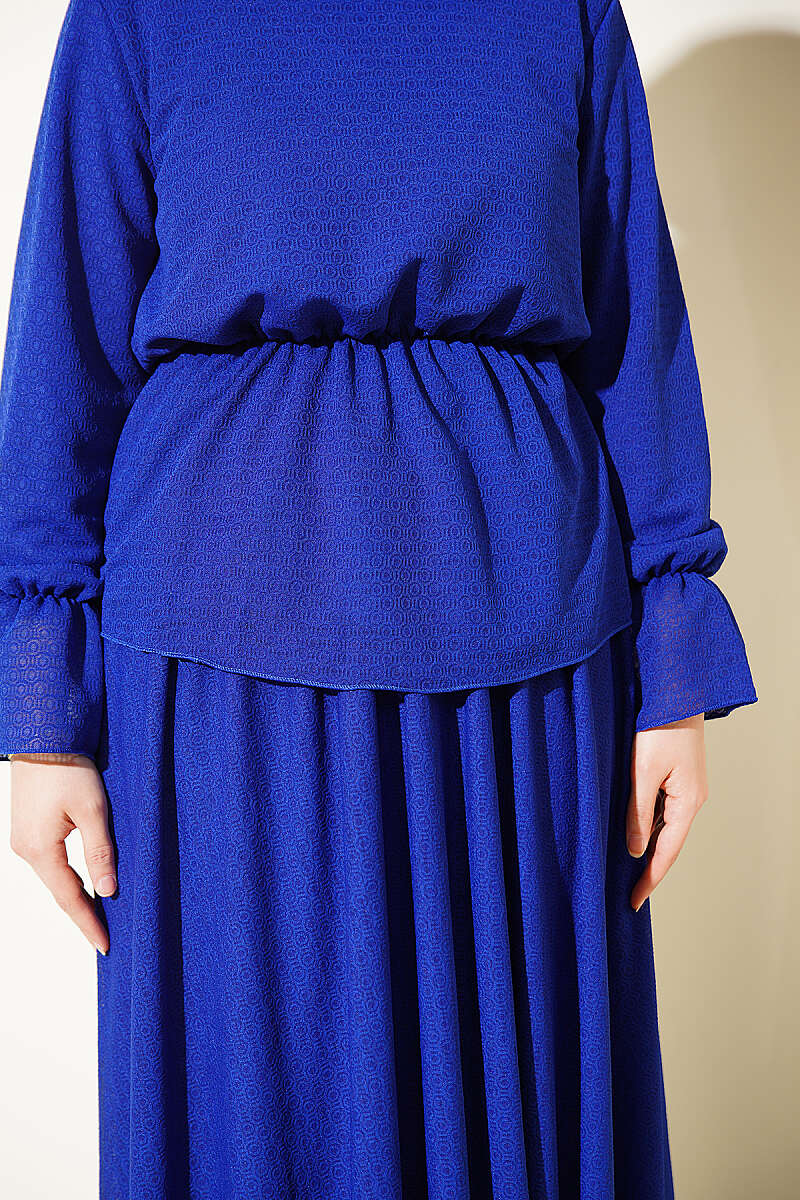 Beli Lastikli Desenli Etekli İkili Takım Saks