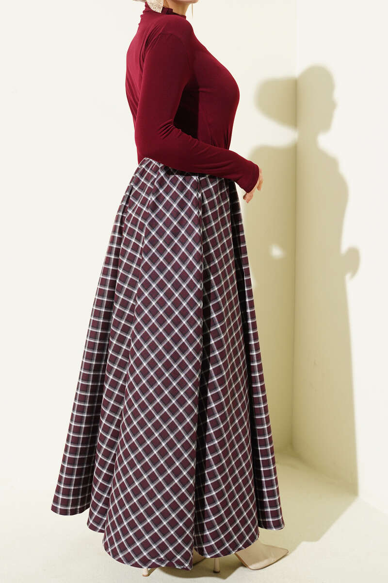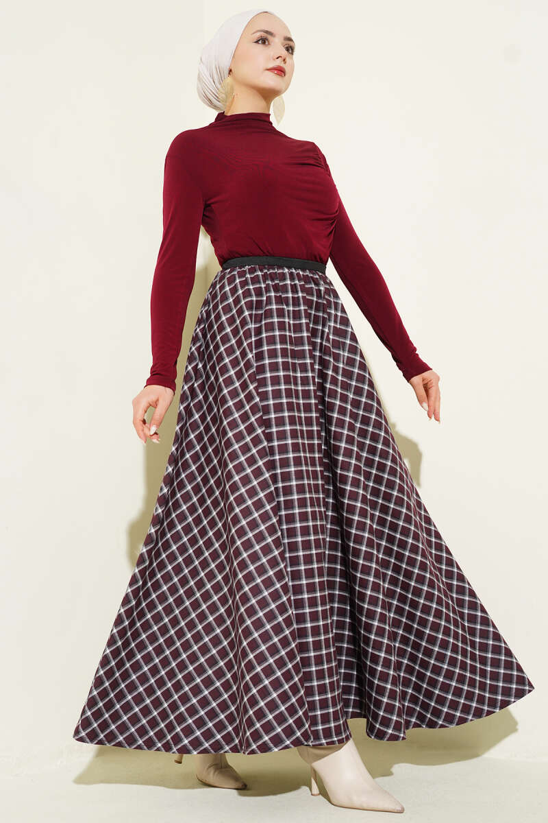 Beli Lastikli Ekose Desen Kloş Etek Kahve
