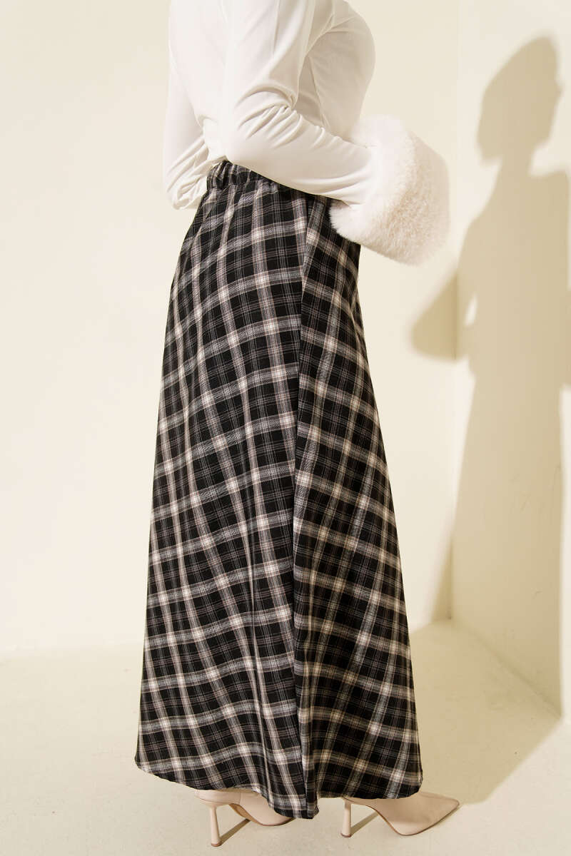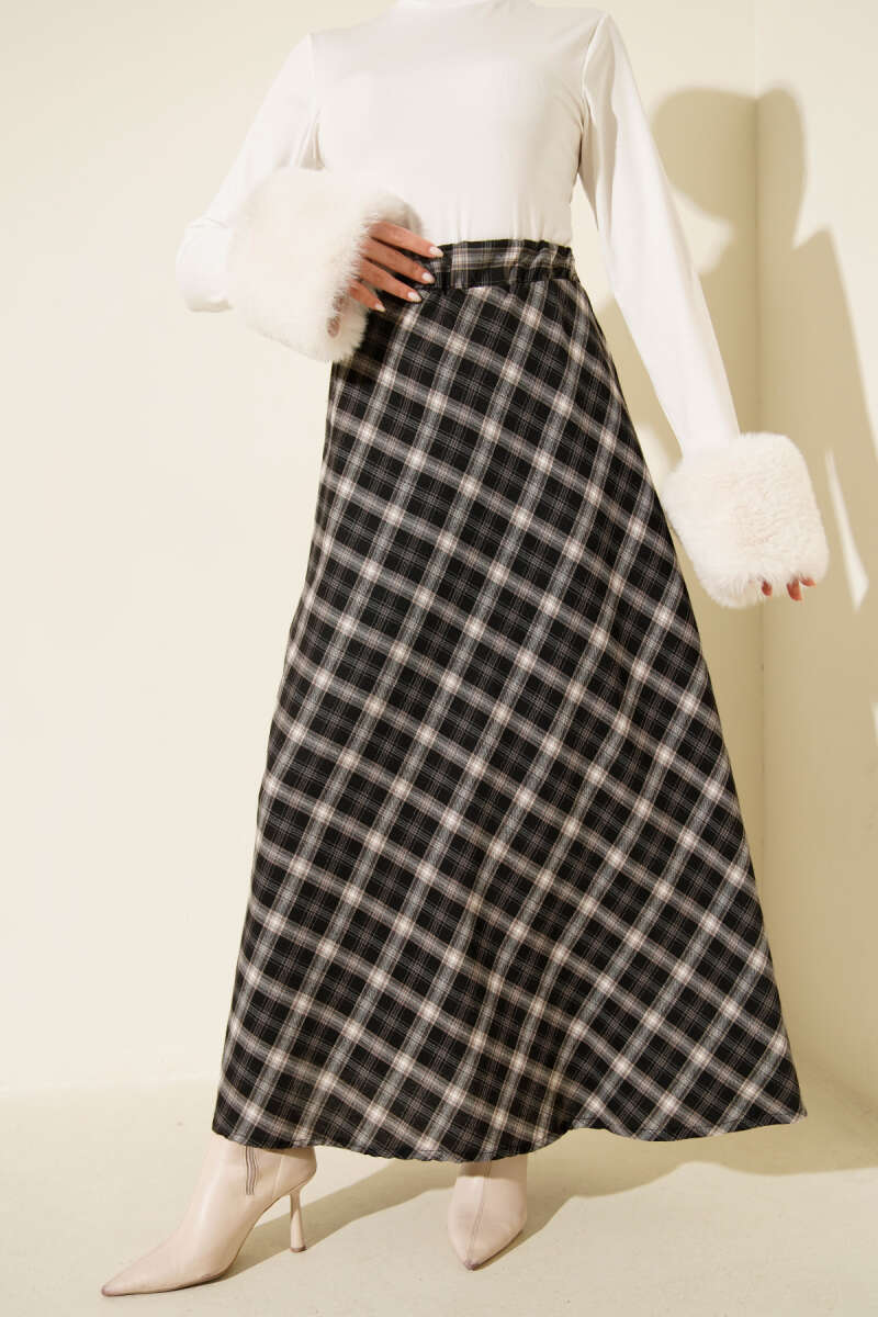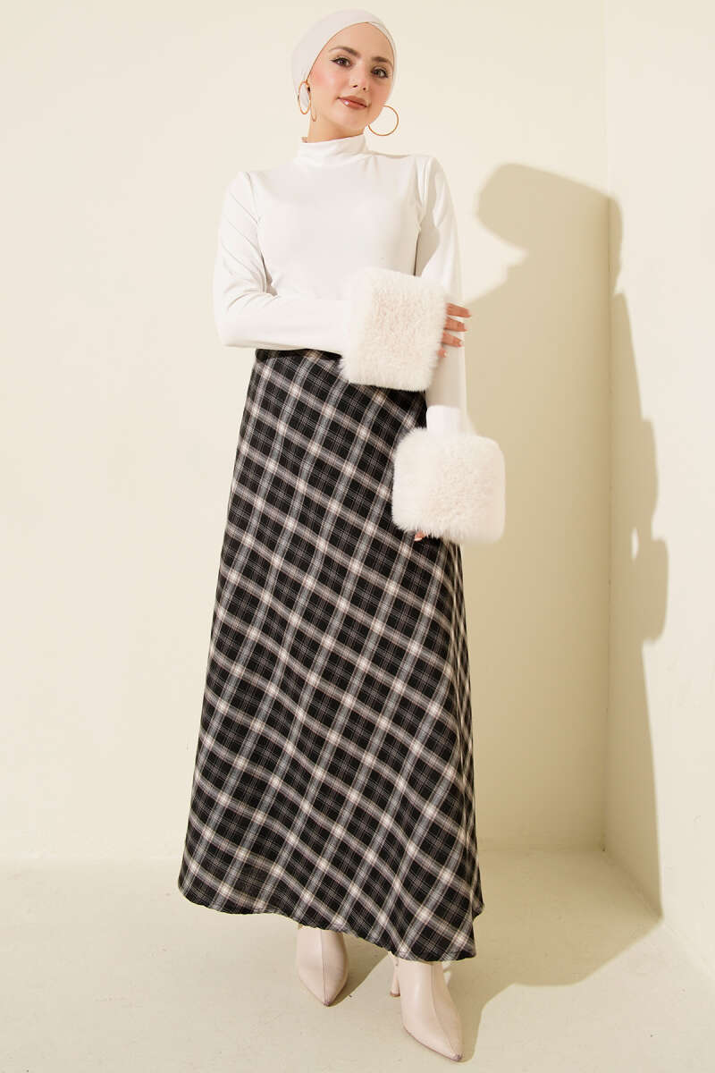 Beli Lastikli Ekoseli Basic Etek Kahve