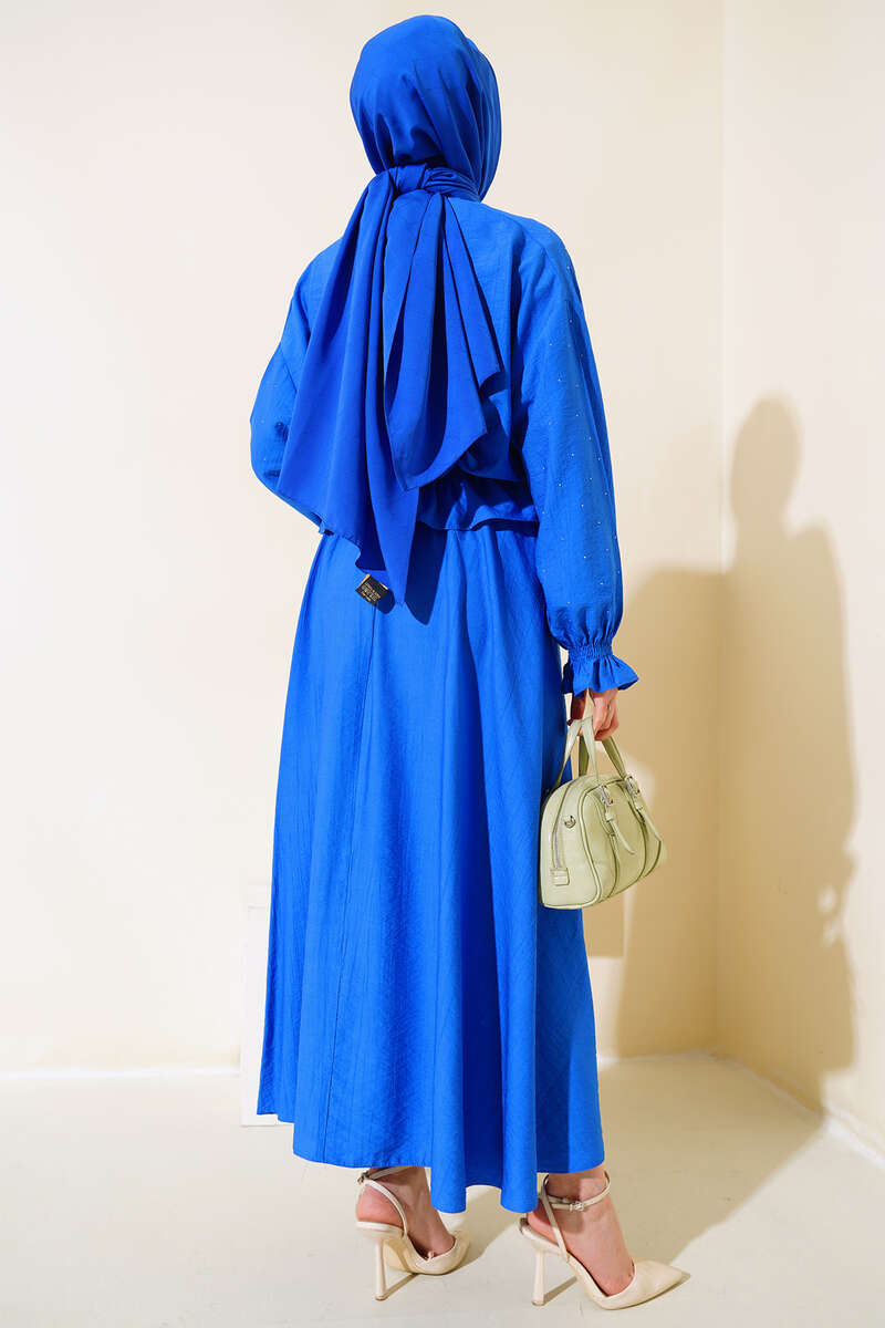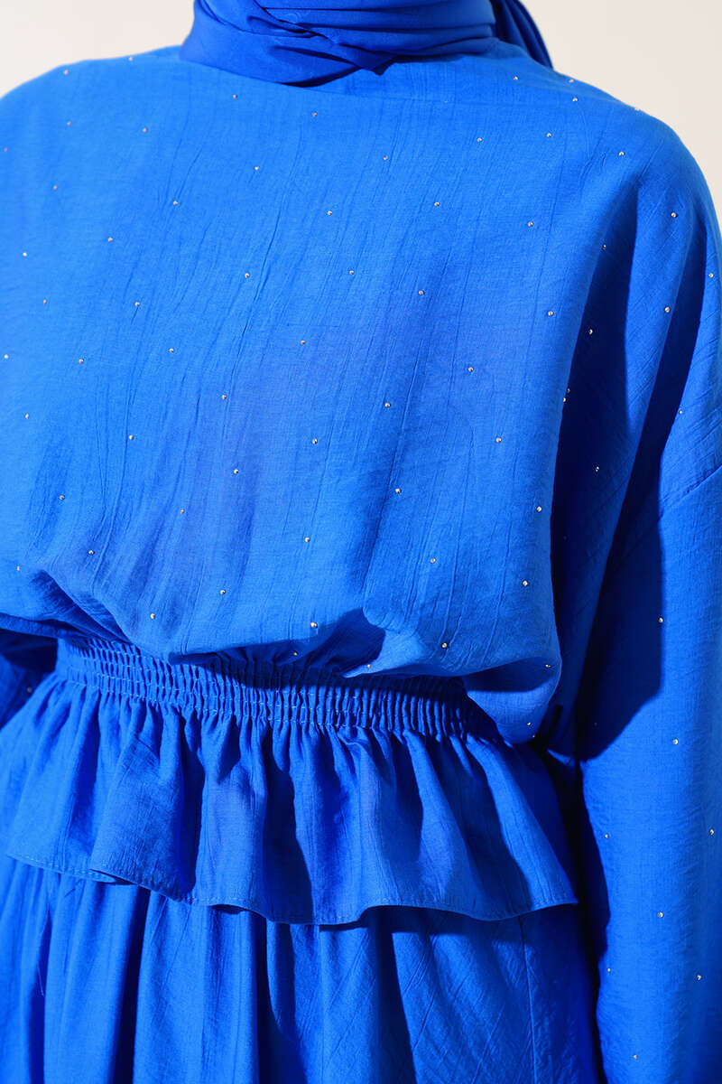 Yeni sezon etekli takım modelimiz sizlerle beraber. Bluzumuzun önü ve kolları taşlarla süslenmiştir. Kol bilekleri ve beli gipelidir. Sırtı fermuarlıdır. Eteğimizin beli lastiklidir. Astarsızdır. Şık ve modern görüntüsüyle göz kamaştıracaksınız.