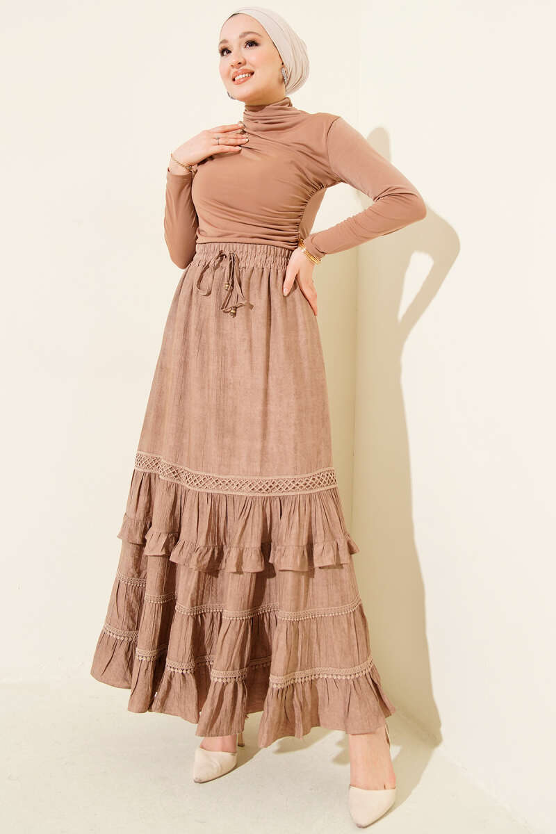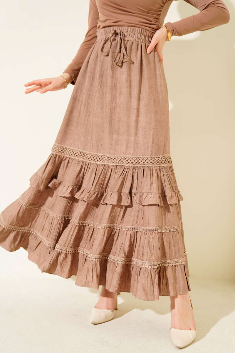 Beli Lastikli Fırfırlı Etek Çağla Yeşili