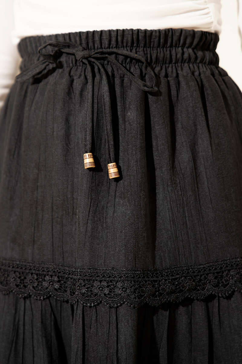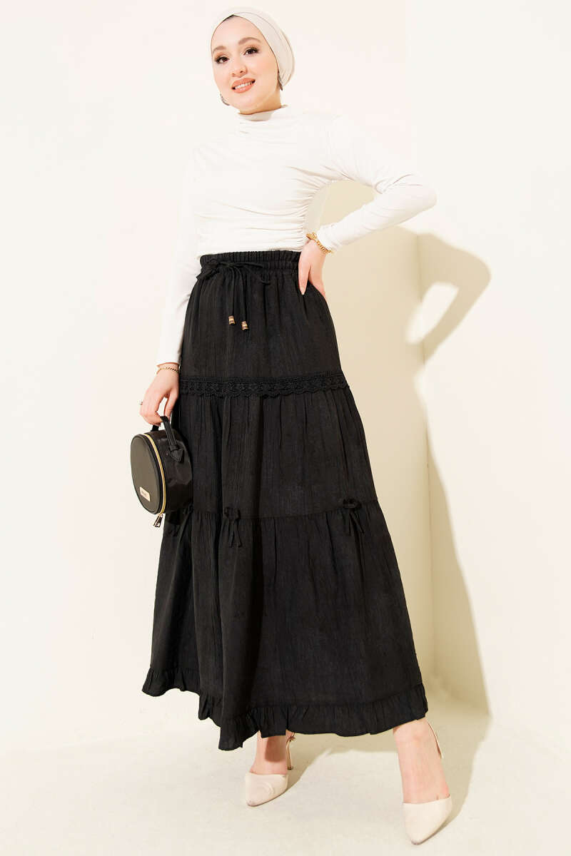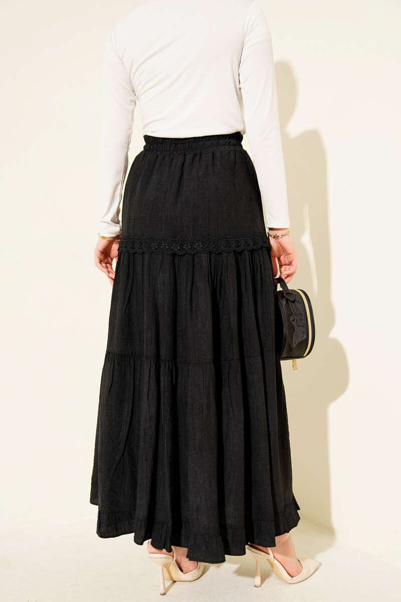 Beli Lastikli Fırfırlı Etek Siyah