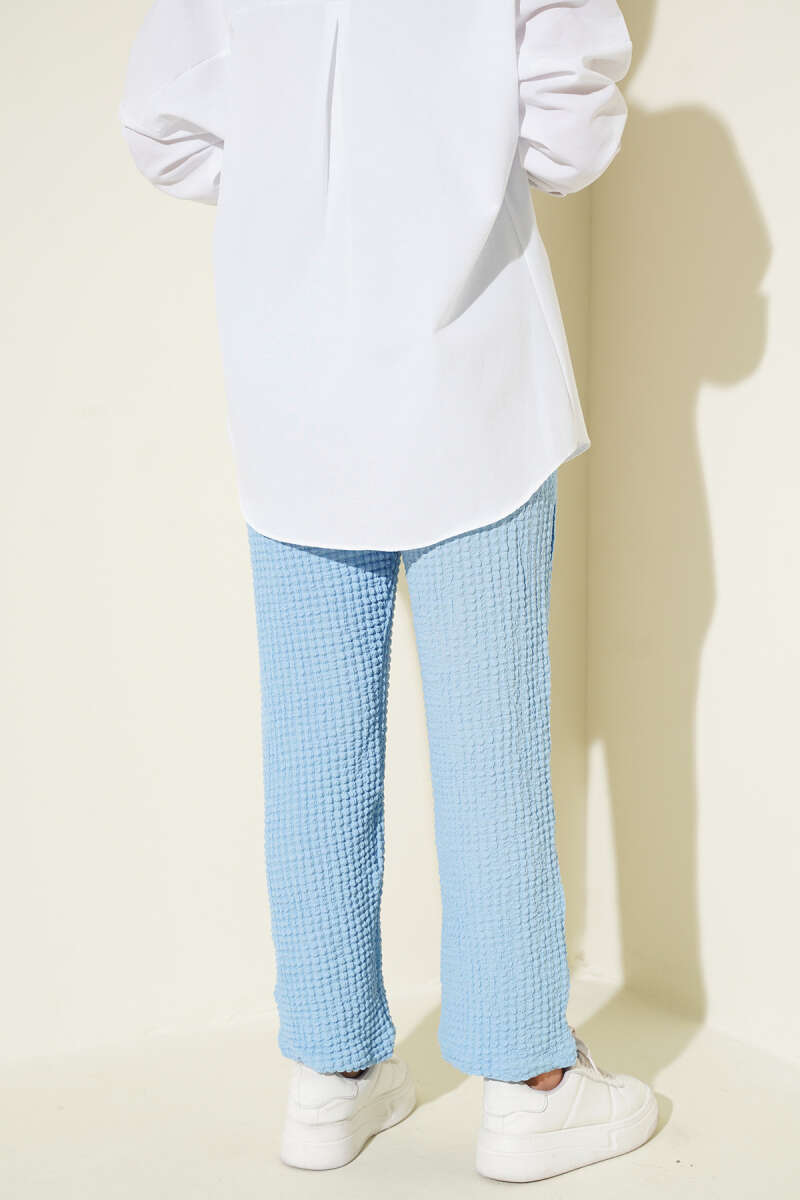 Beli Lastikli Gofre Pantolon Bebe Mavi