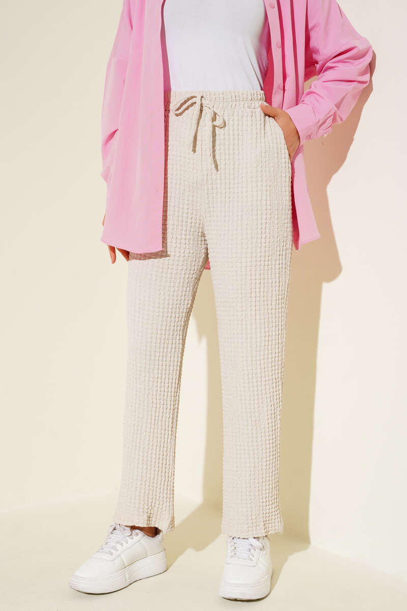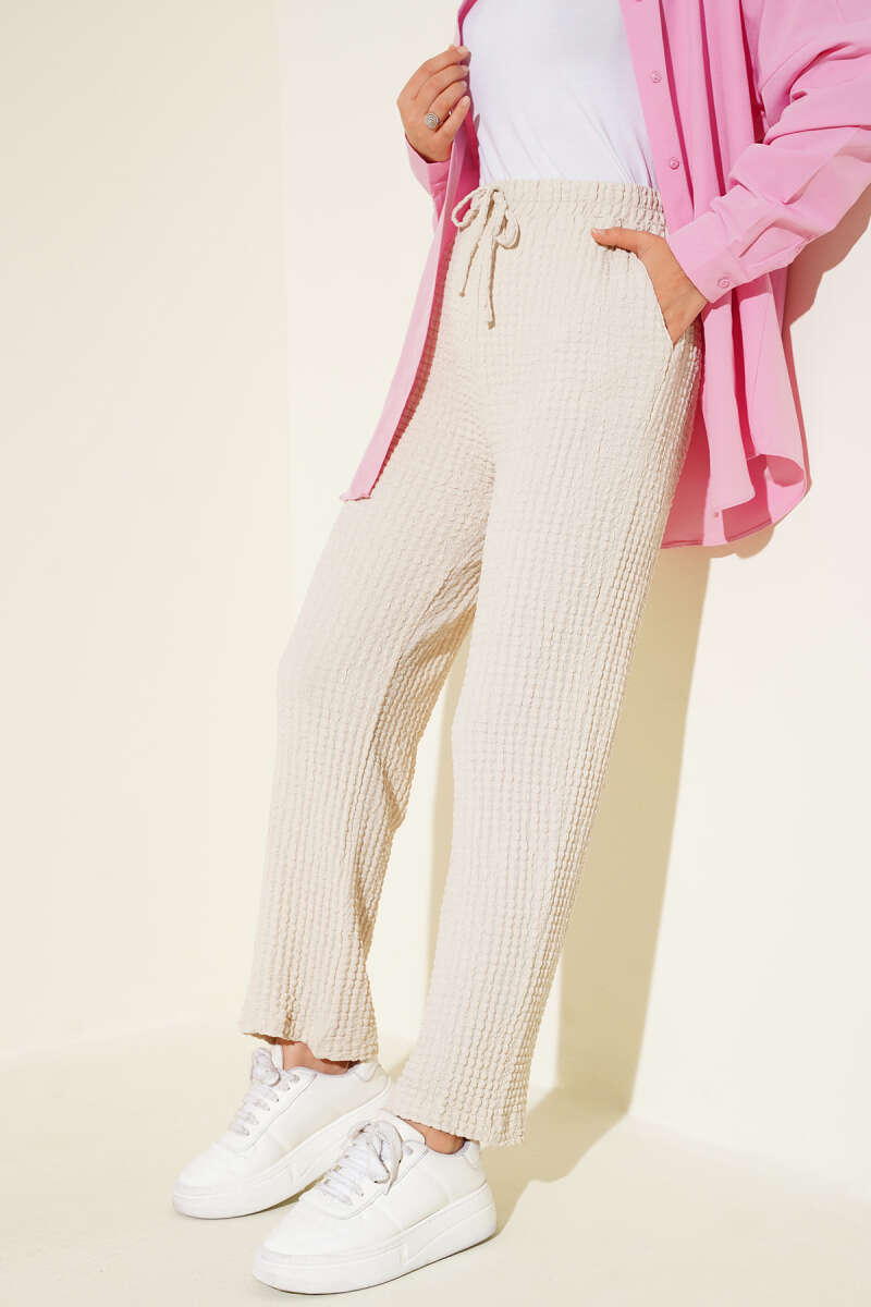 Bel Lastikli Tencel Pantolon Beyaz