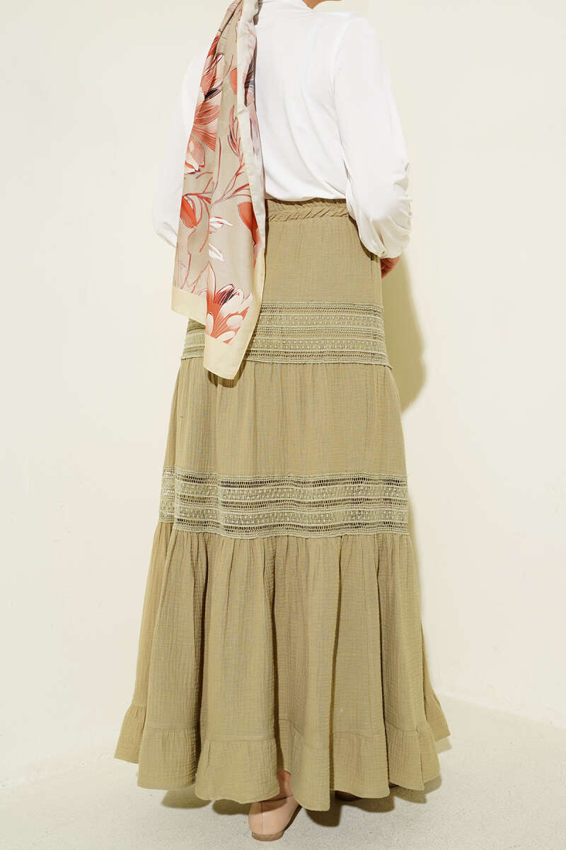 Beli Lastikli Güpür Şeritli Müslin Etek Çağla Yeşili