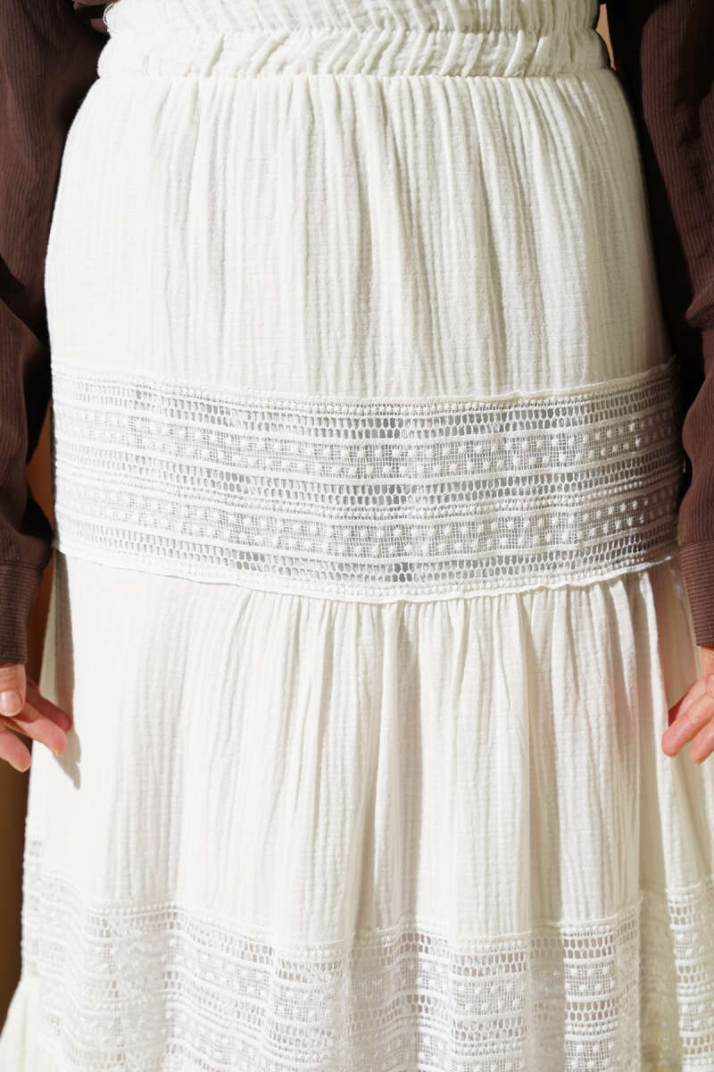 Beli Lastikli Güpür Şeritli Müslin Etek Siyah