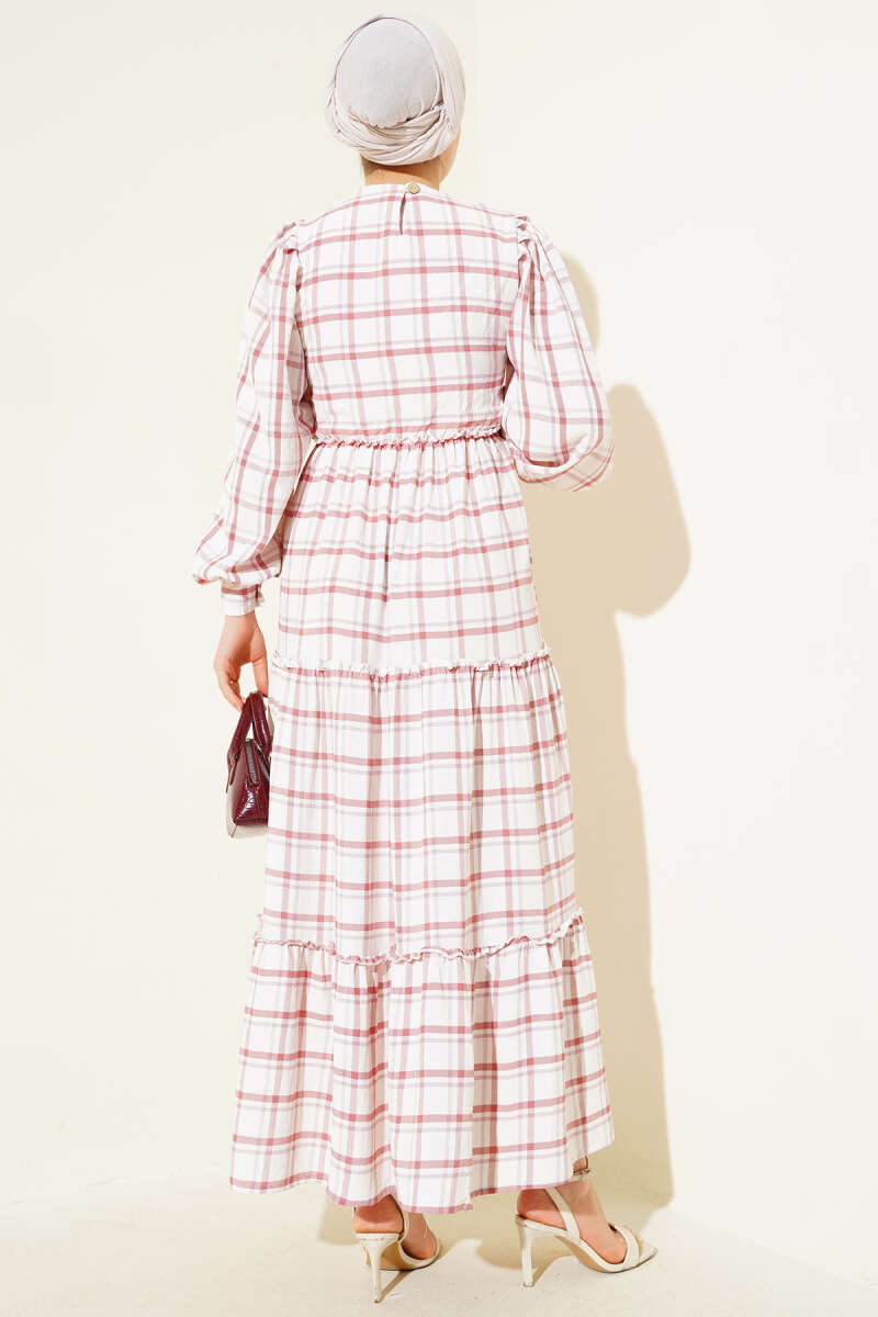 Balıkçı Yaka Pileli Midi Elbise Kahve
