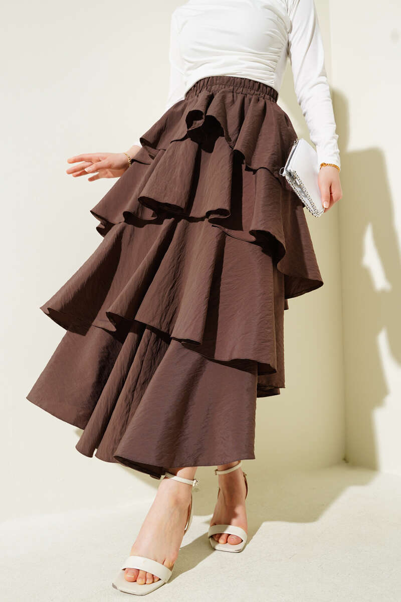 Bel Lastikli Süet Kloş Etek Acı Kahve