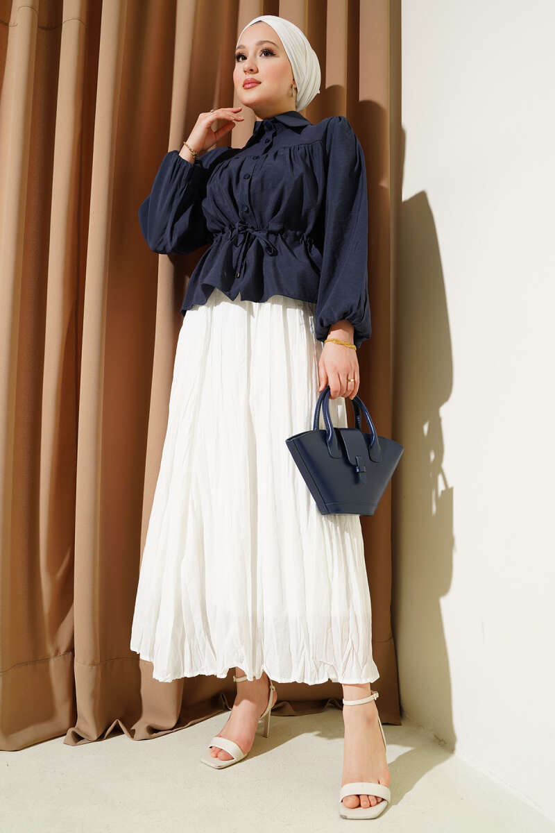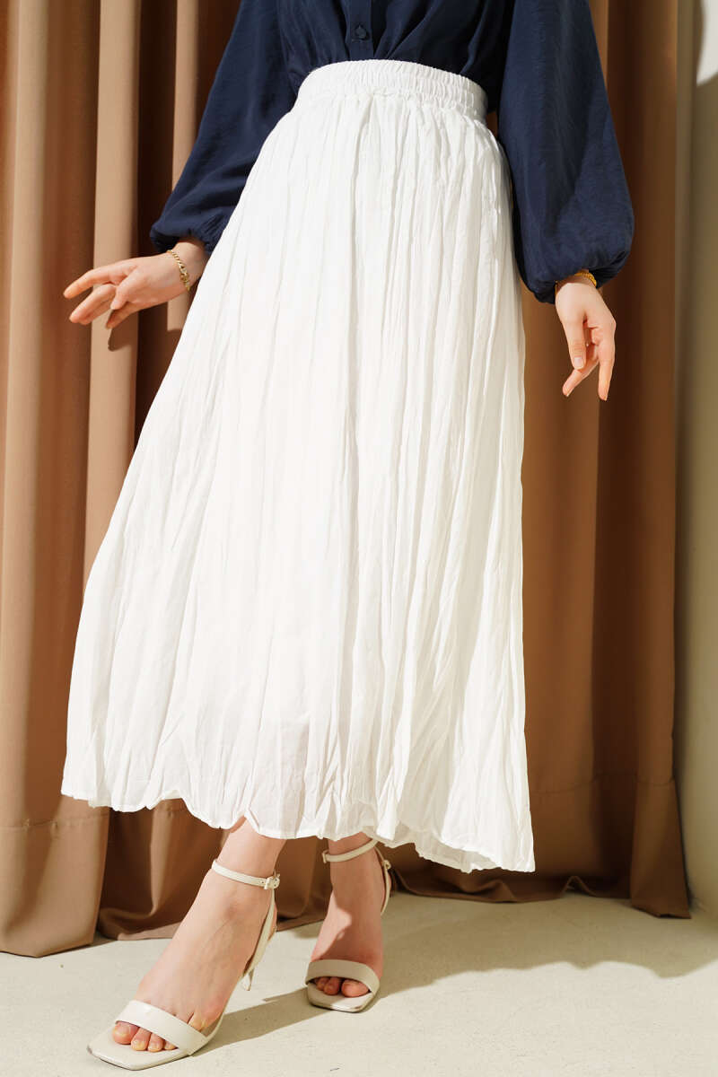 Bisiklet Yaka Sakal Detaylı Kazak Beyaz
