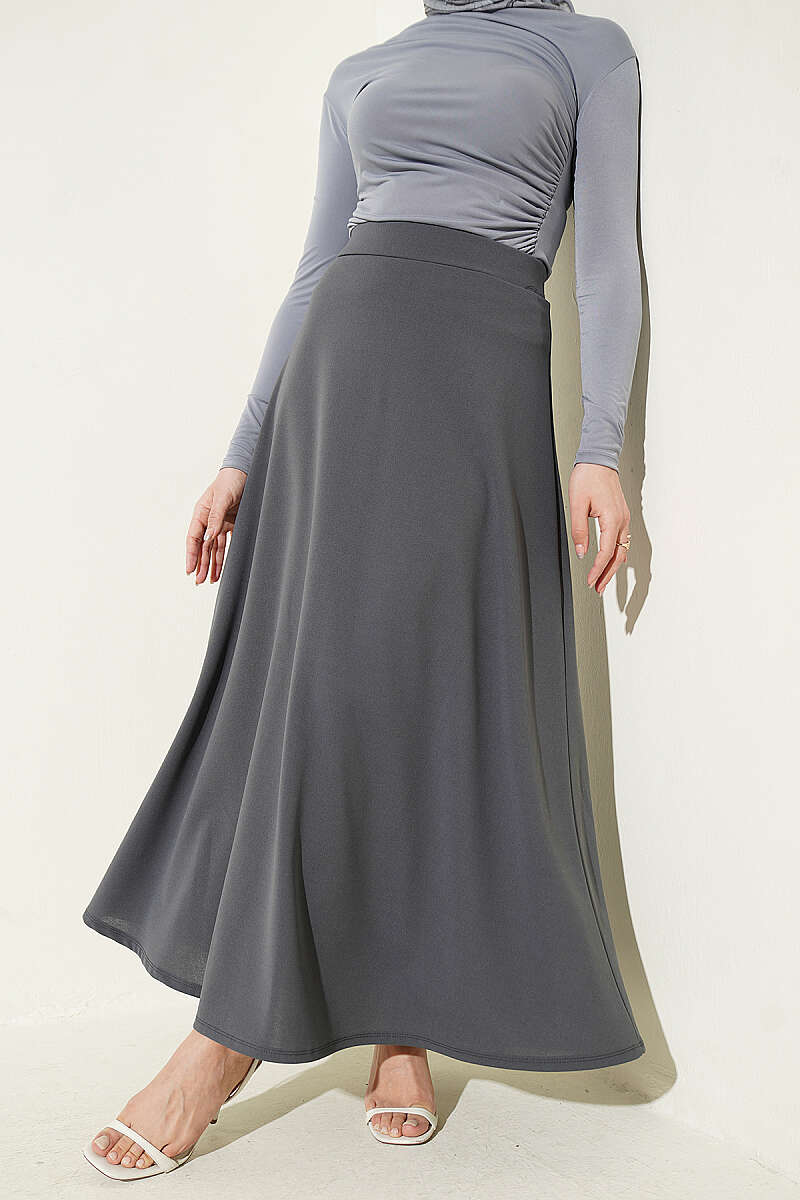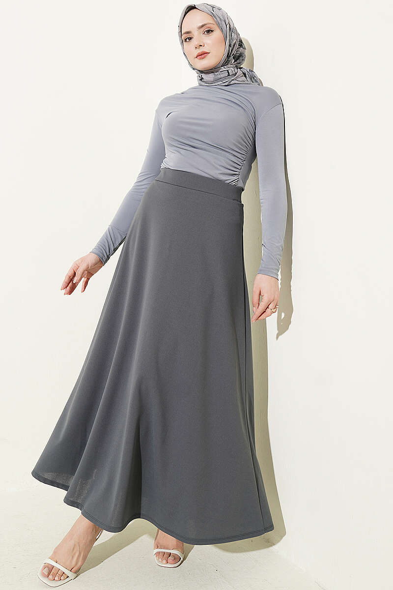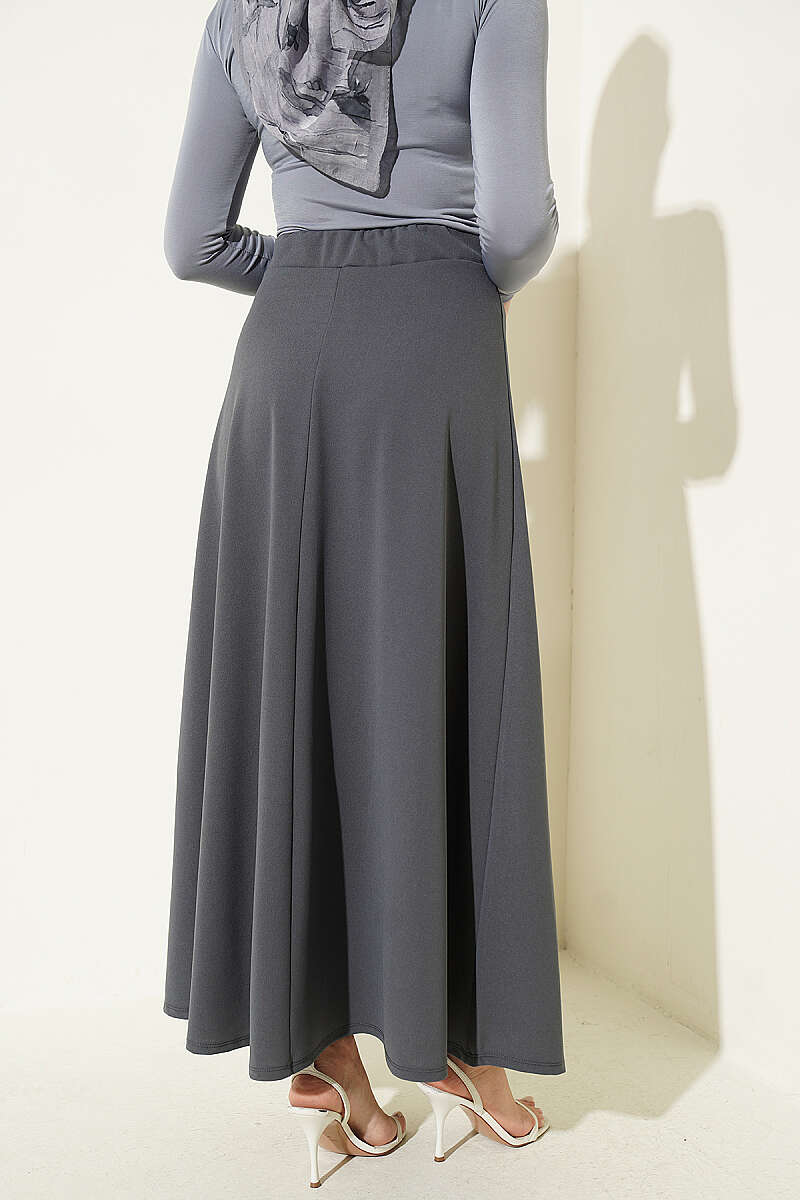 Beli Lastikli Kloş Dabıl Etek Kayrak Grisi