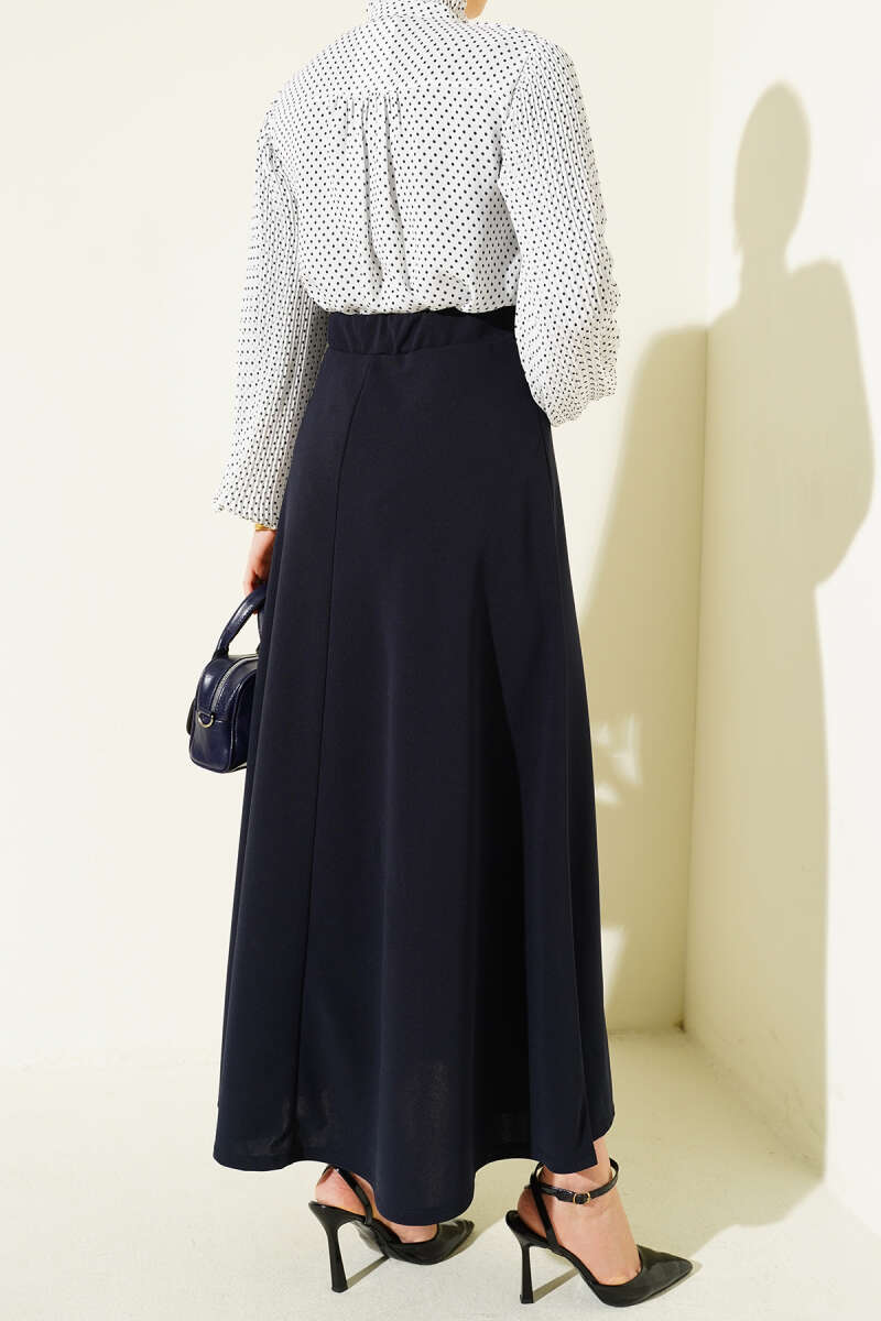 Retro Desen Asimetrik Şifon Etek Lacivert