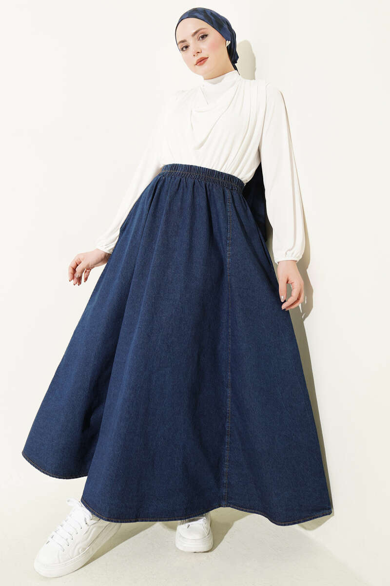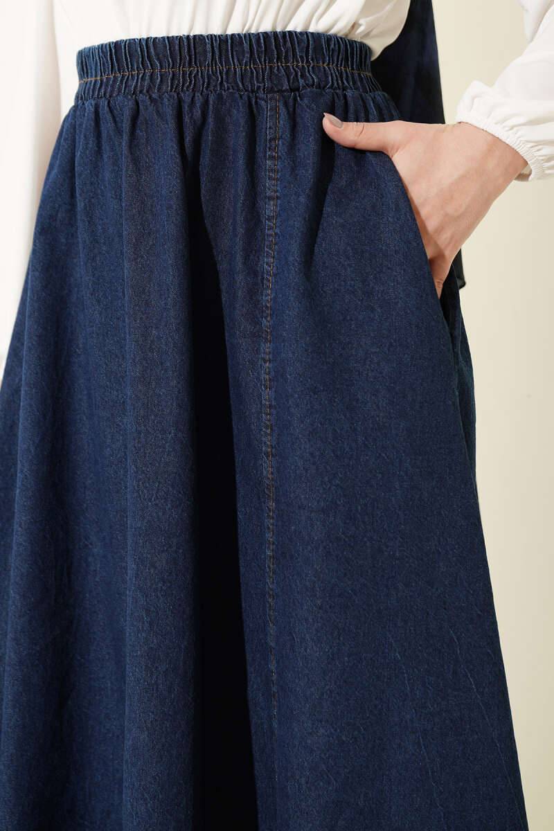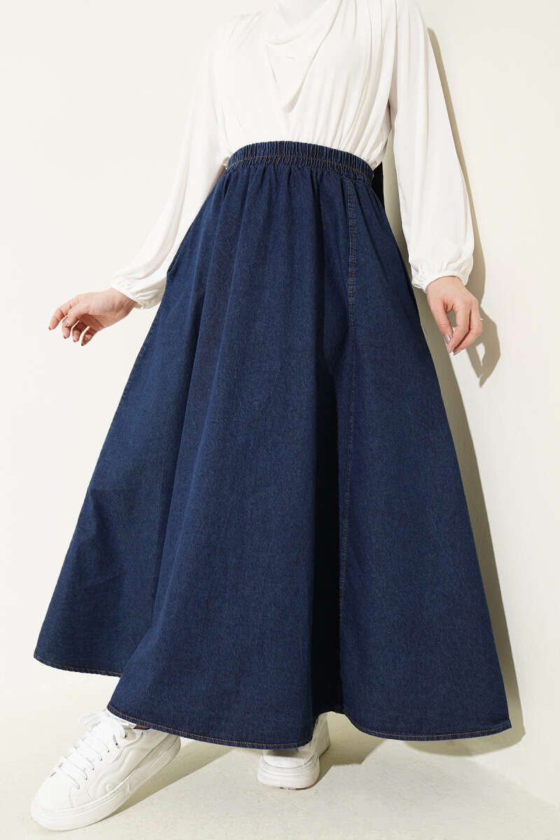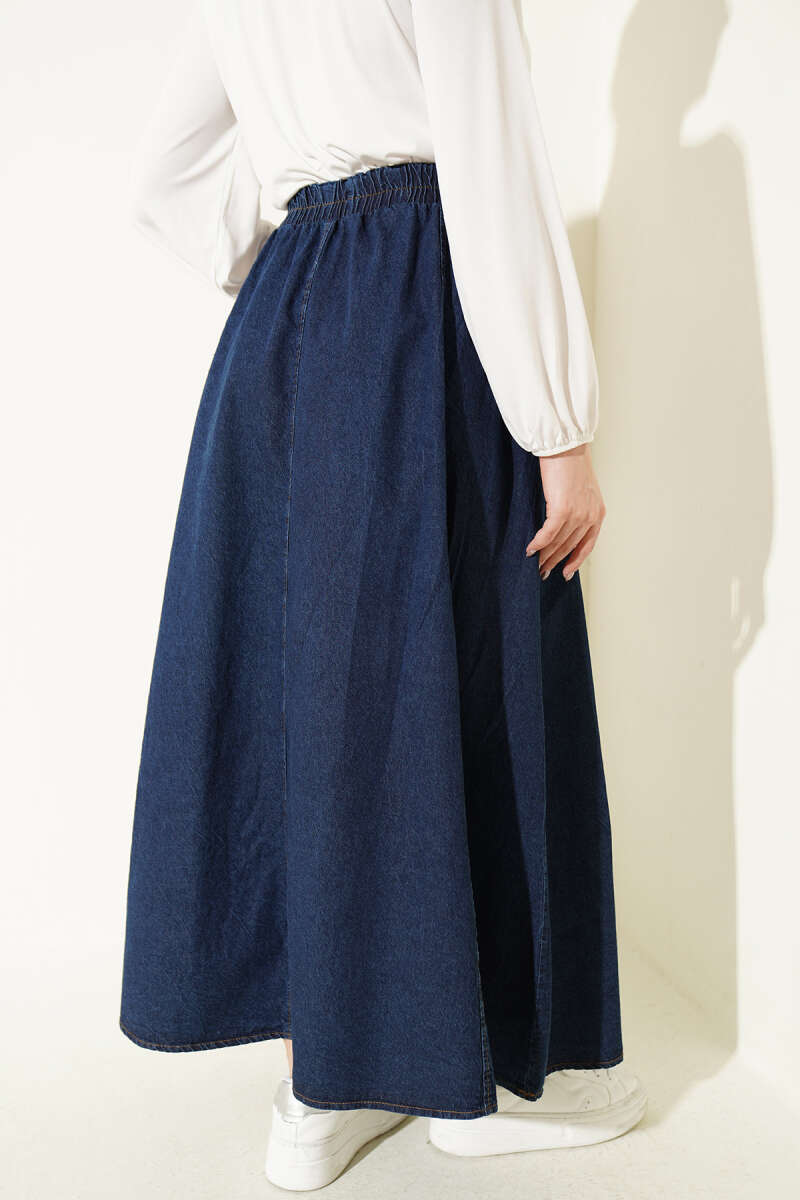 Beli Lastikli Kloş Kot Etek Açık Mavi