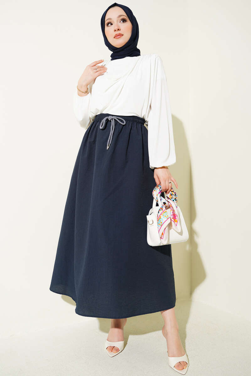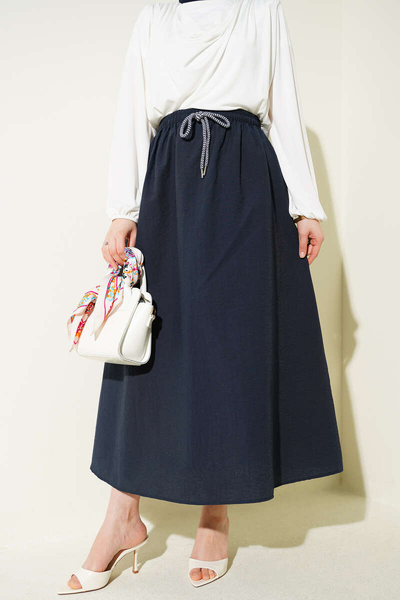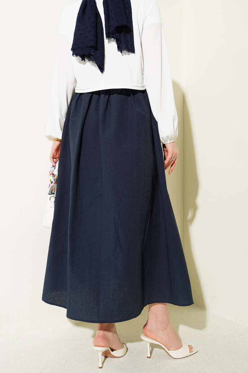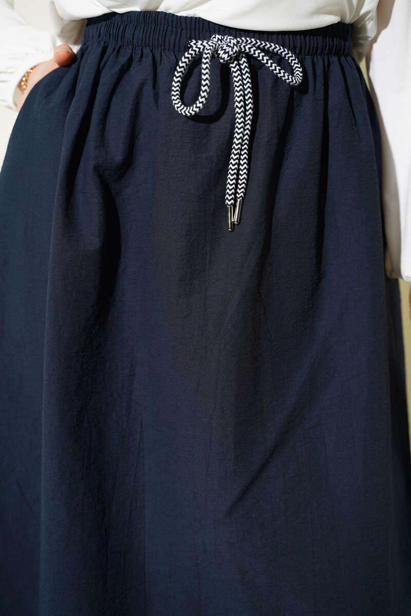 Beli Lastikli Kloş Paraşüt Etek Lacivert