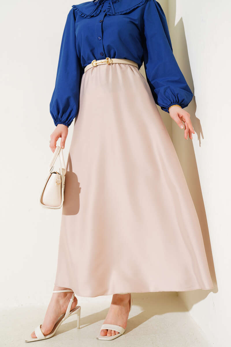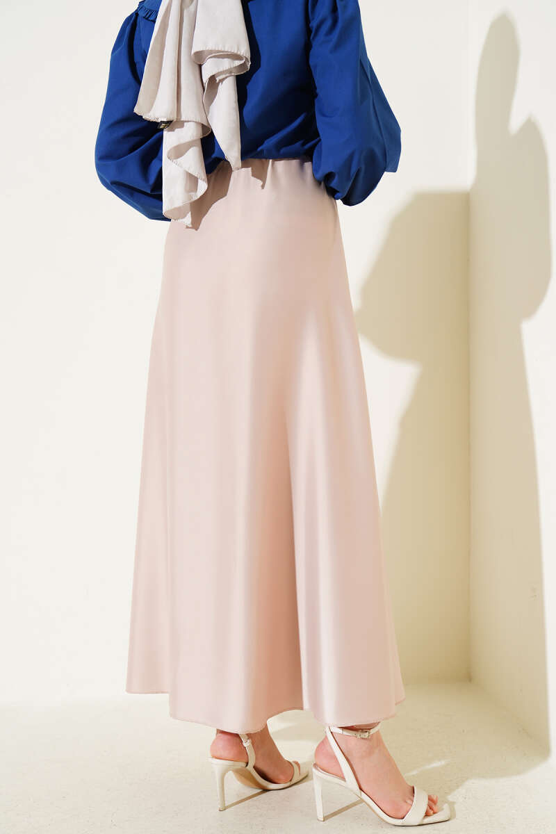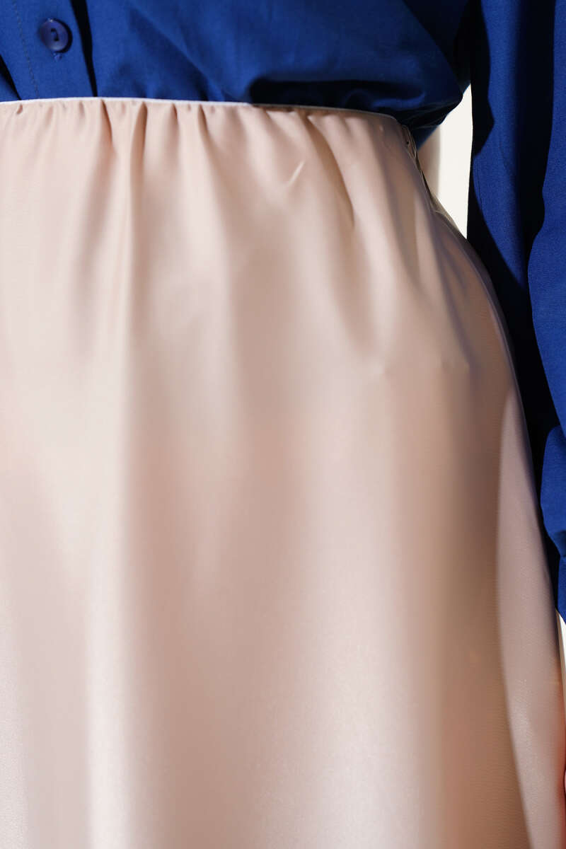Saten Görünümlü Pileli Etek Bej