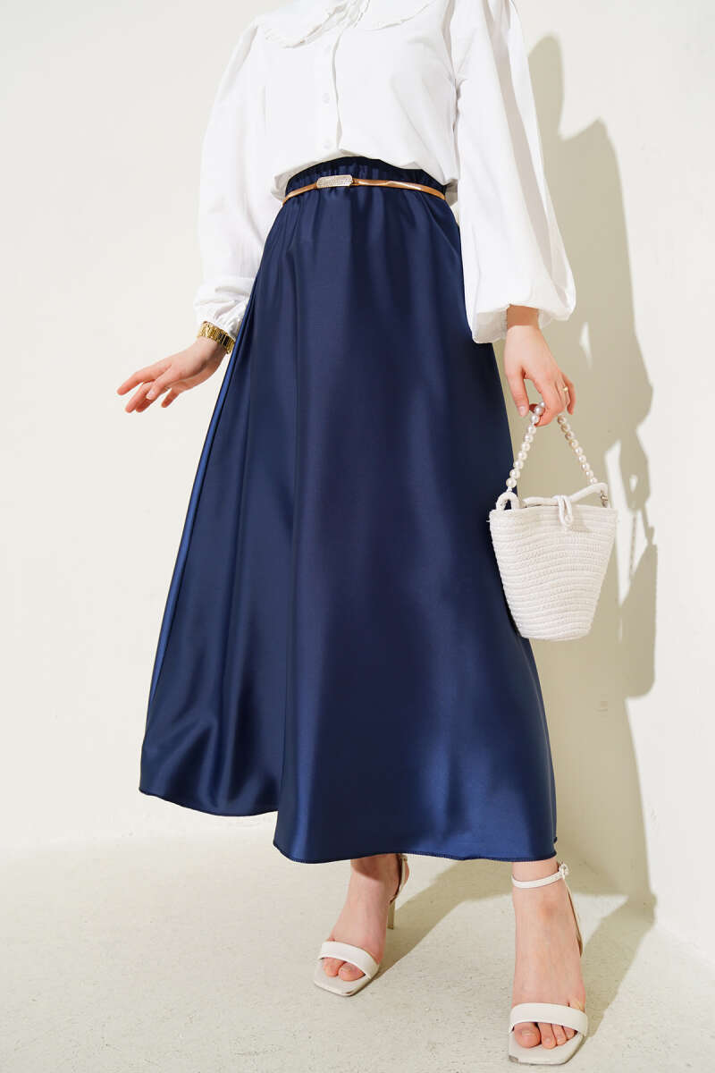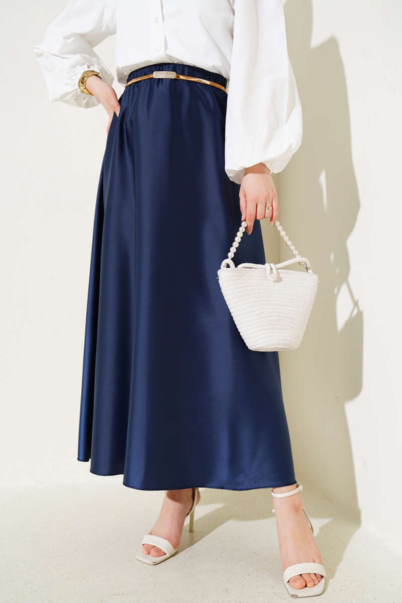 Kemer Aksesuarlı Ekoseli Etek Haki