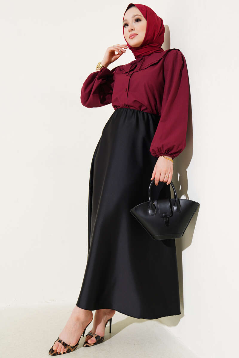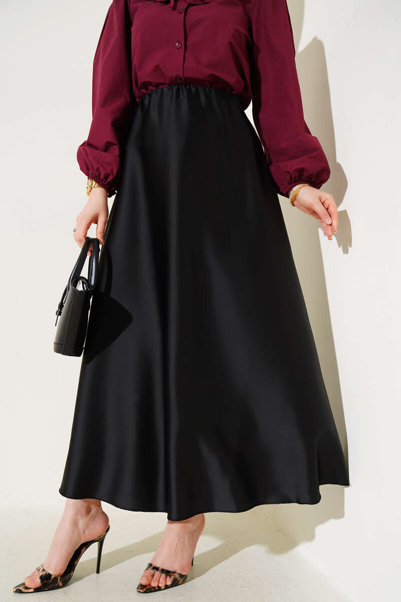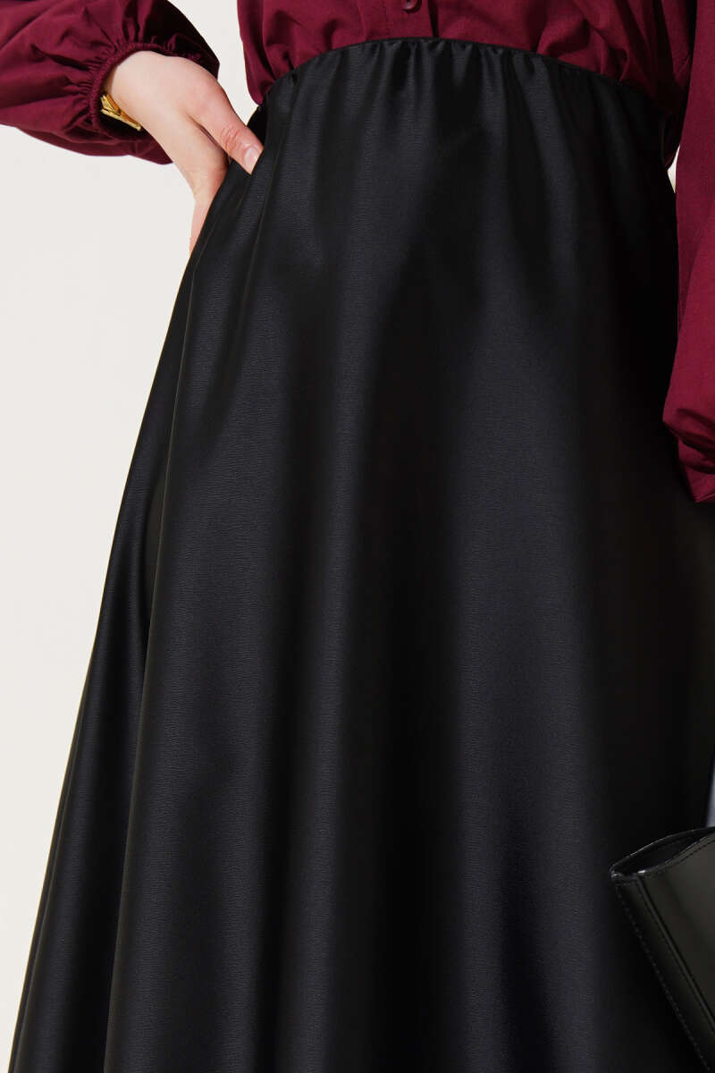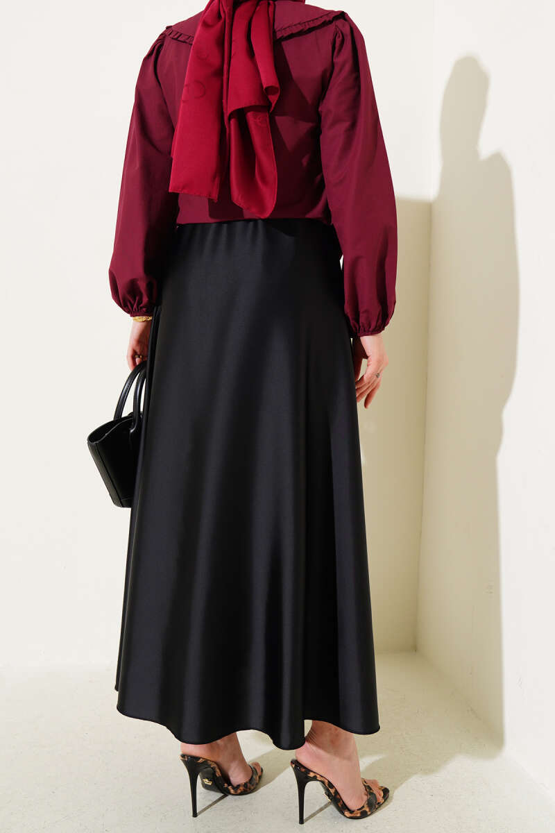 Saten Görünümlü Pileli Etek Bordo