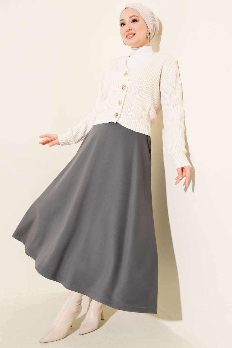 Beli Lastikli Kloş Scuba Etek Lacivert