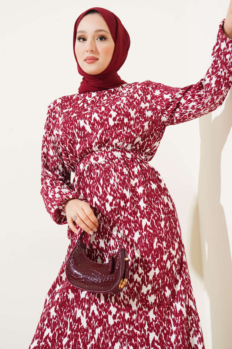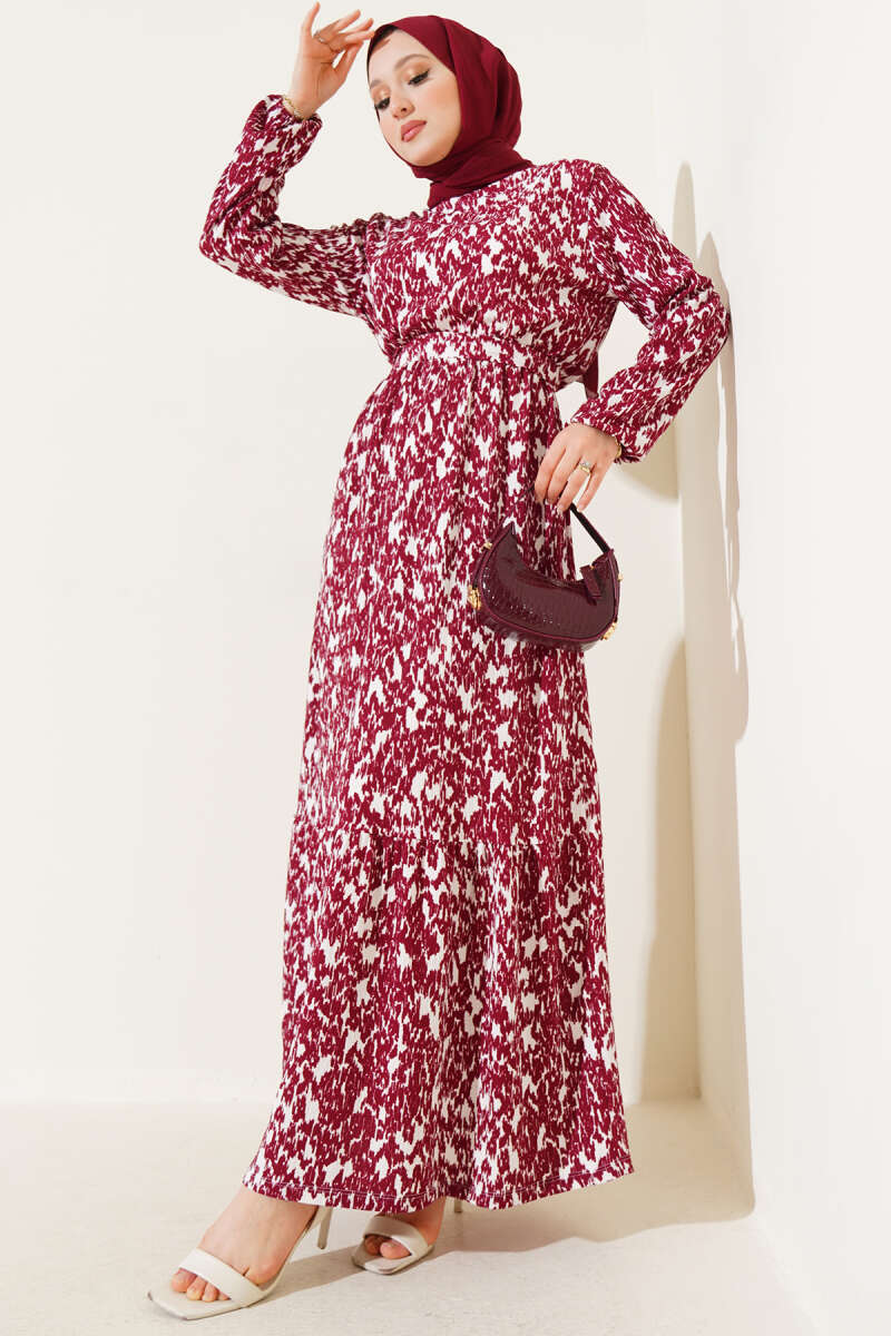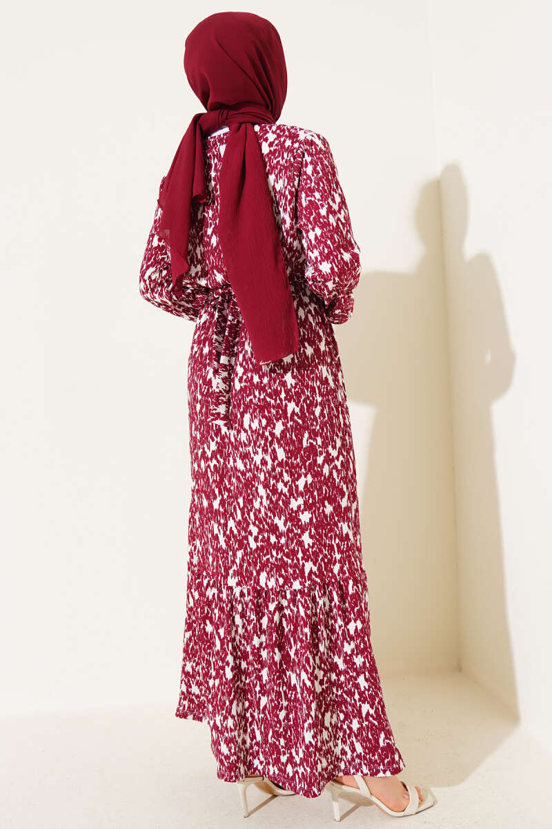 Çiçek Motifli Tül Pelerinli Abiye Elbise Bordo