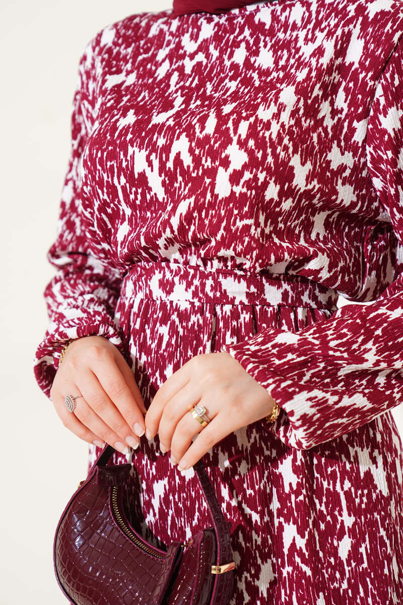 Gömlek Yaka Düğmeli Triko Elbise Bordo