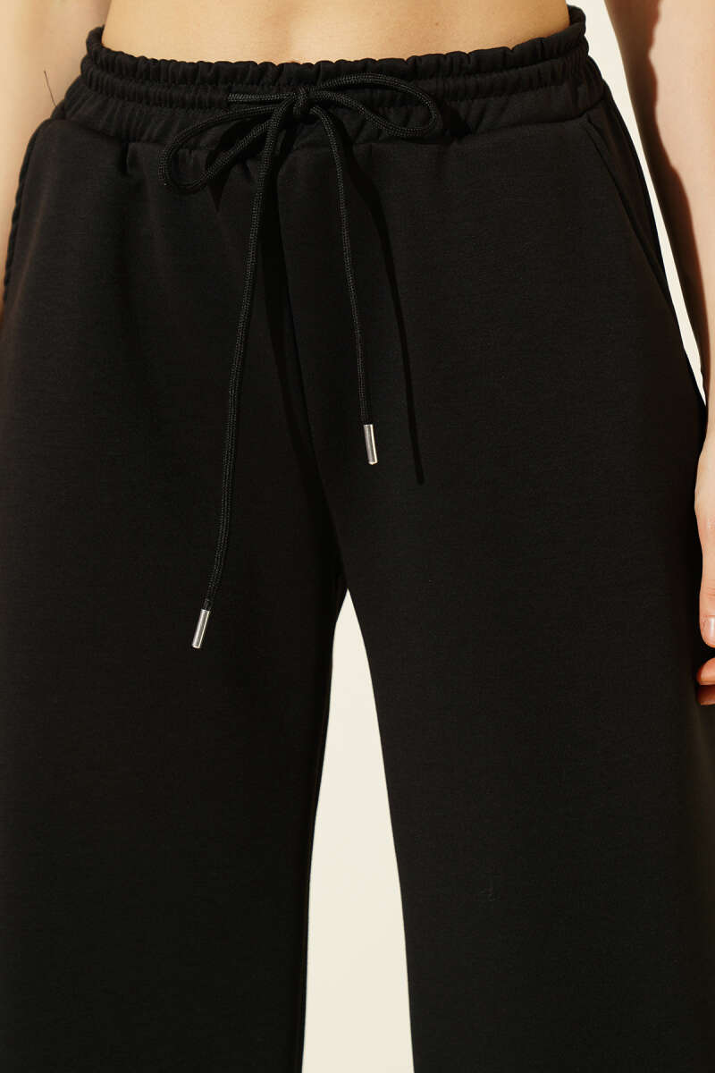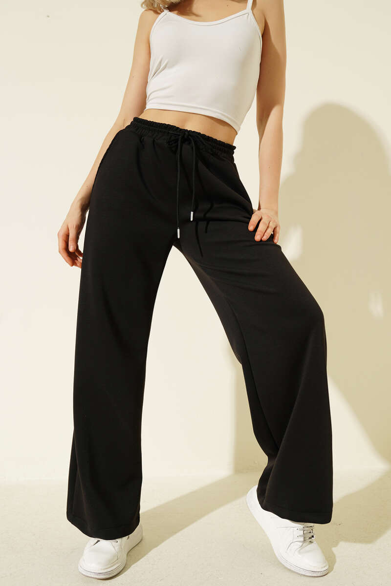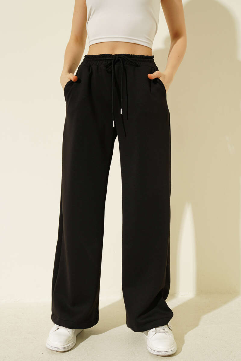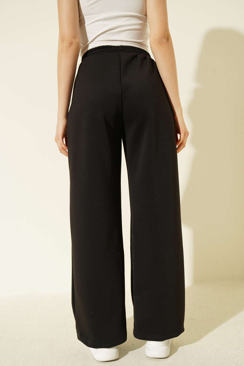Geniş Paça Düğmeli Pantolon Siyah