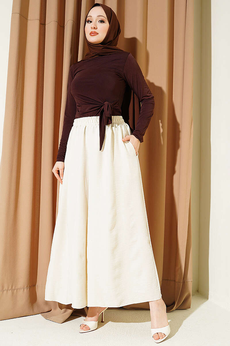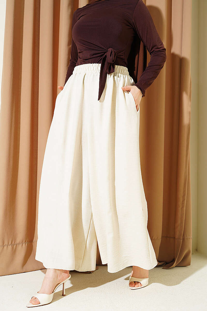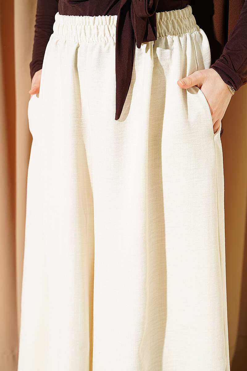 Beli Lastikli Oversize Paçalı Pantolon Bej