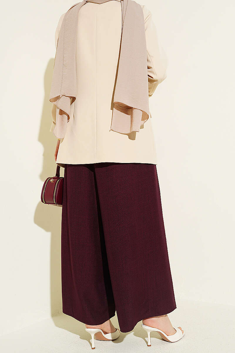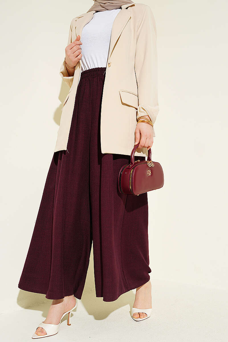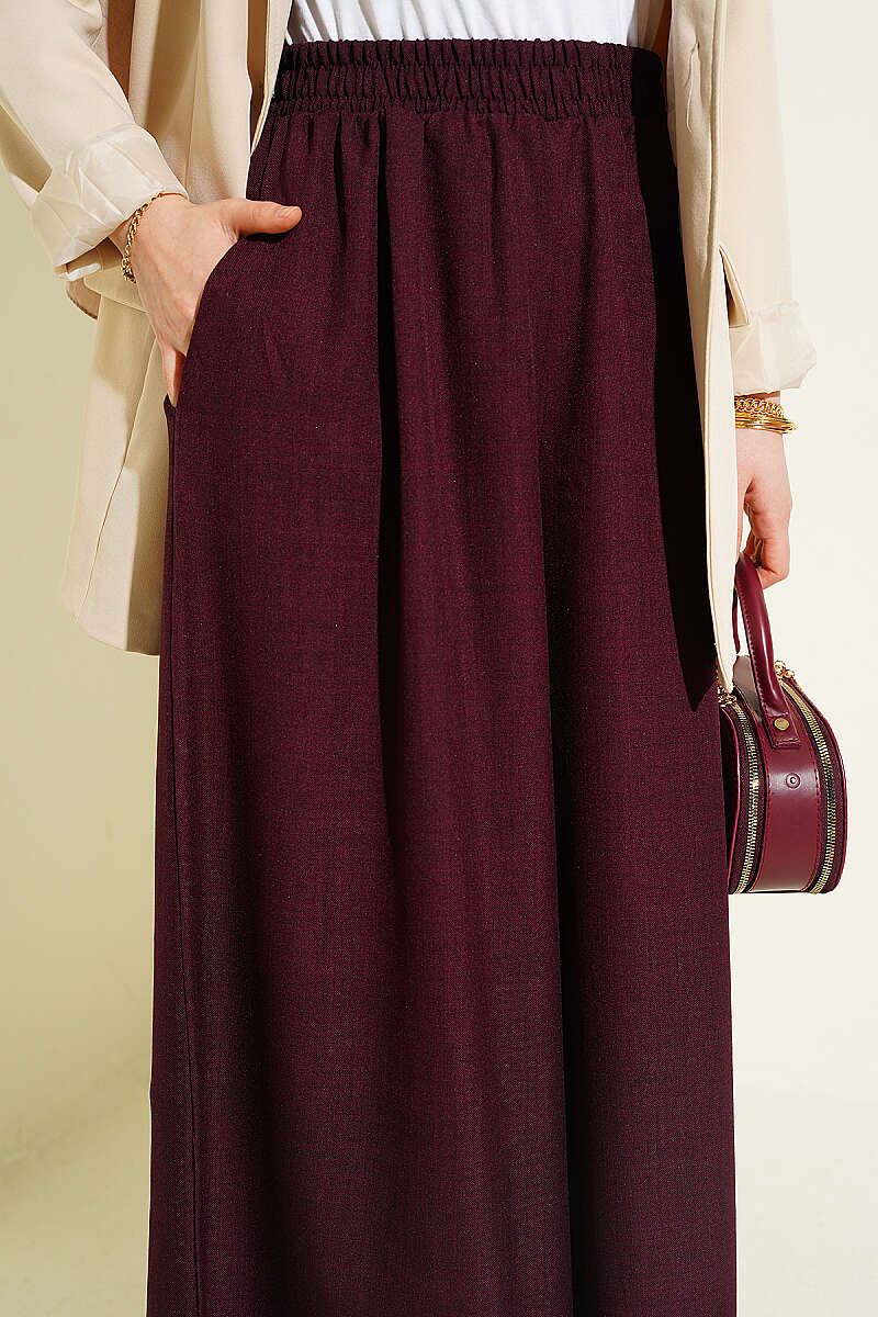 Beli Lastikli Oversize Paçalı Pantolon Bordo
