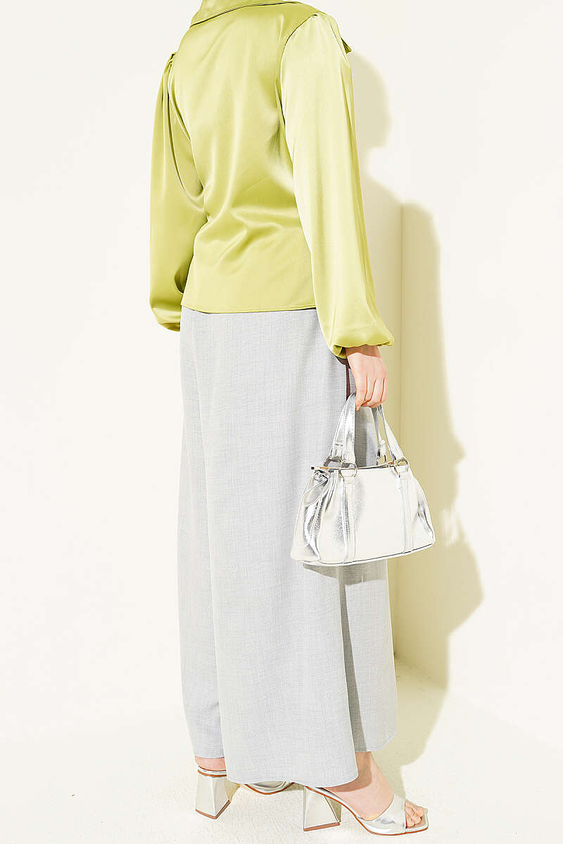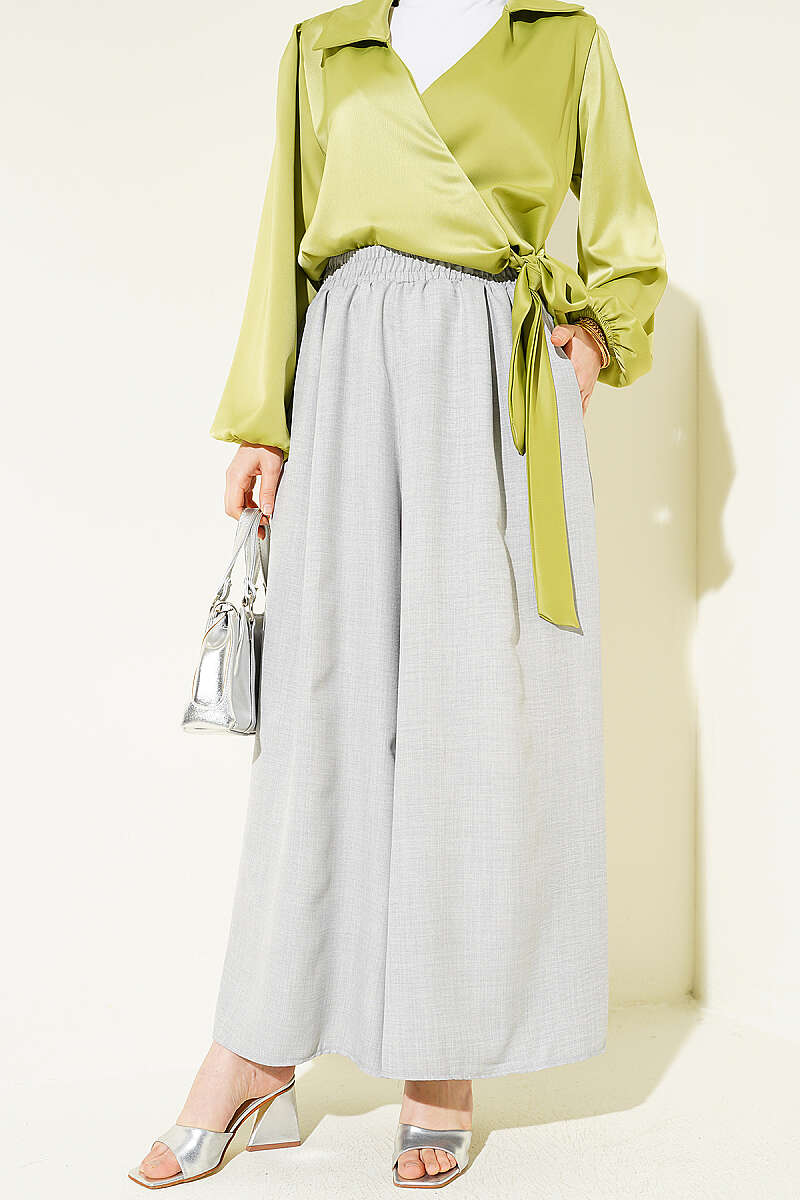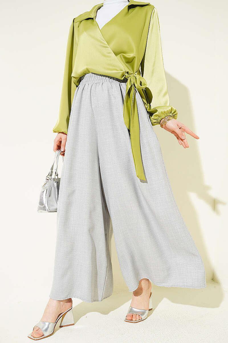 Beli Lastikli Oversize Paçalı Pantolon Gri