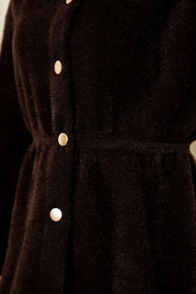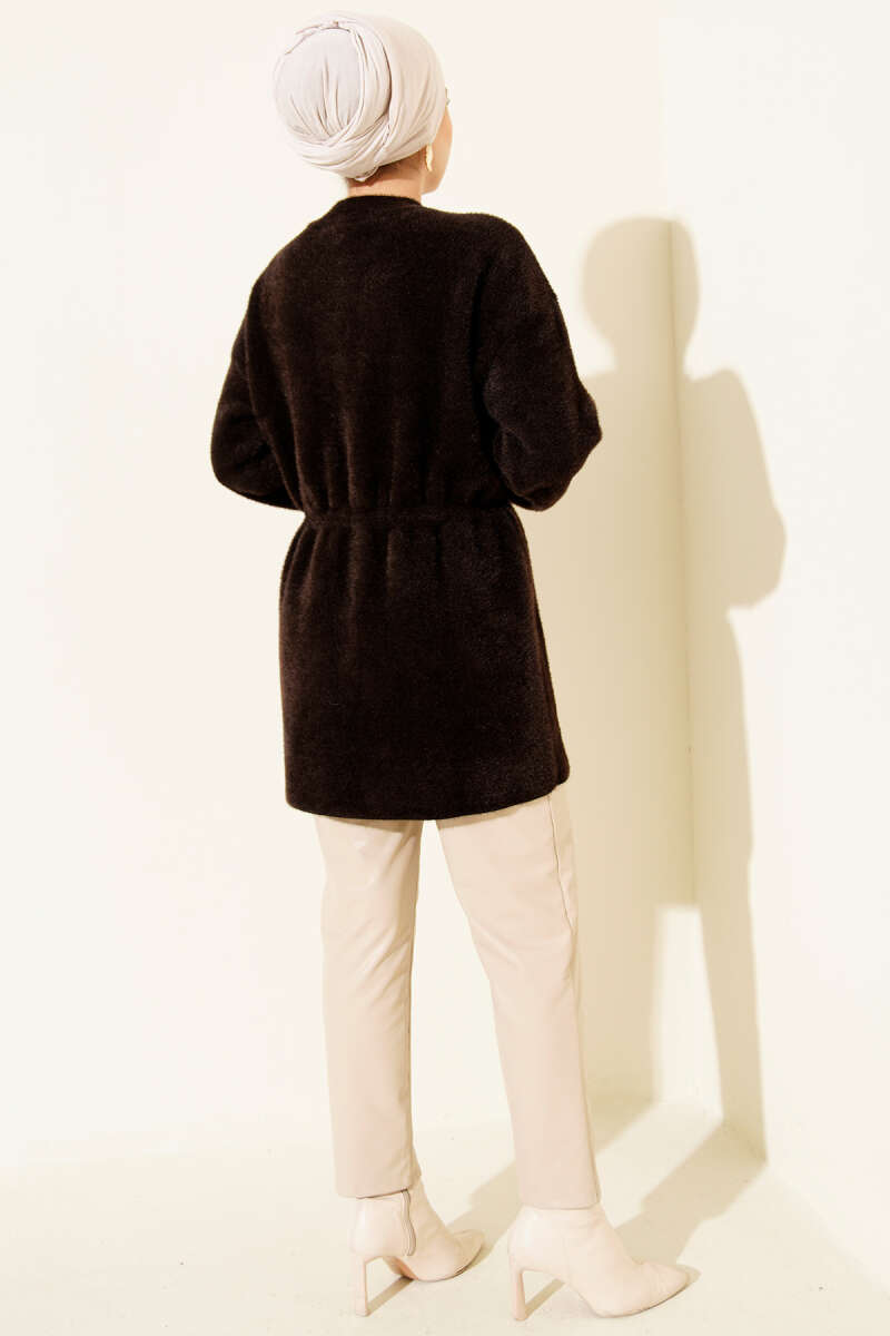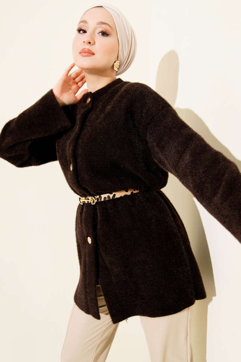 Kol Ucu Düğmeli Şal Yaka Triko Hırka Kahve