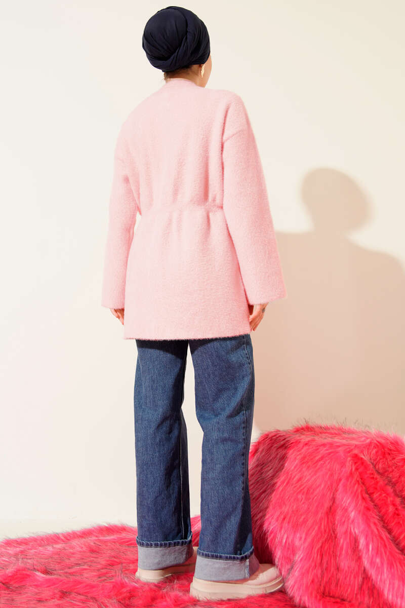 Beli Lastikli Sakallı Yumoş Hırka Mürdüm