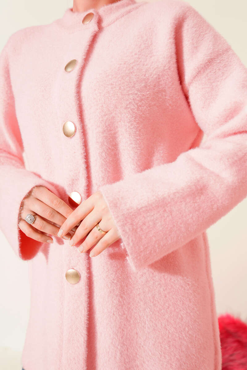 Kol Ucu Düğmeli Şal Yaka Triko Hırka Vizon